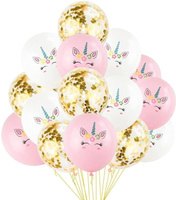Set de 15 baloane mixte confetti unicorn ziua de aur