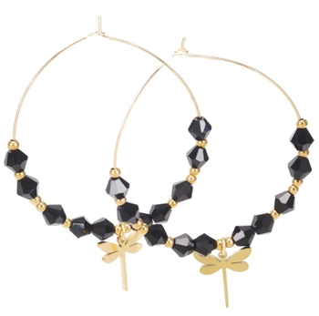 Cercei suspendati din aur, picatura neagra, otel chirurgical, eleganti