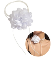 Colier choker cu floare mare innodata, floare alba