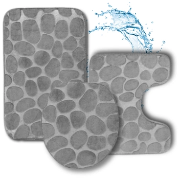 Set 3 covorașe de baie, covoraș antiderapant, gri