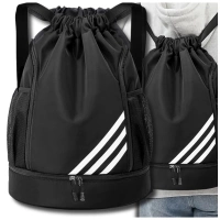 Rucsac sport negru pentru antrenament de gimnastica cu cordon