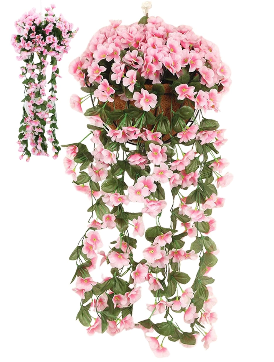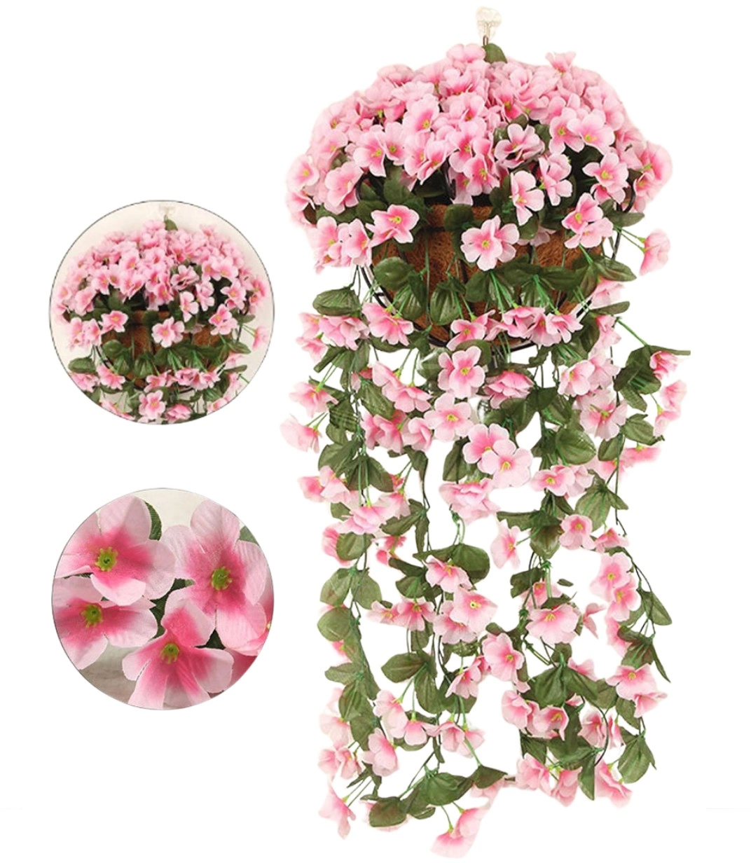 Vă prezentăm noile flori artificiale roz suspendate sub formă de iederă cățărătoare, ideale pentru oricine dorește să adauge o notă de eleganță și prospețime împrejurimilor sale. Fiecare ramură are o lungime de 85 cm, iar buchetul măsoară 30 x 28 cm, făcându-le să pară incredibil de realiste cu tăietura lor multistratificată și venele în relief de pe petale.