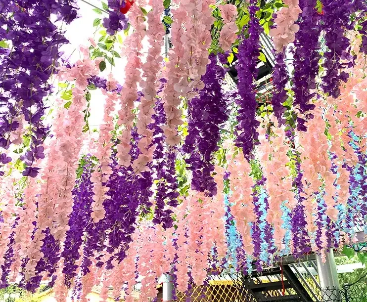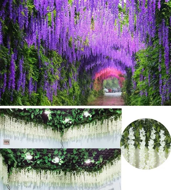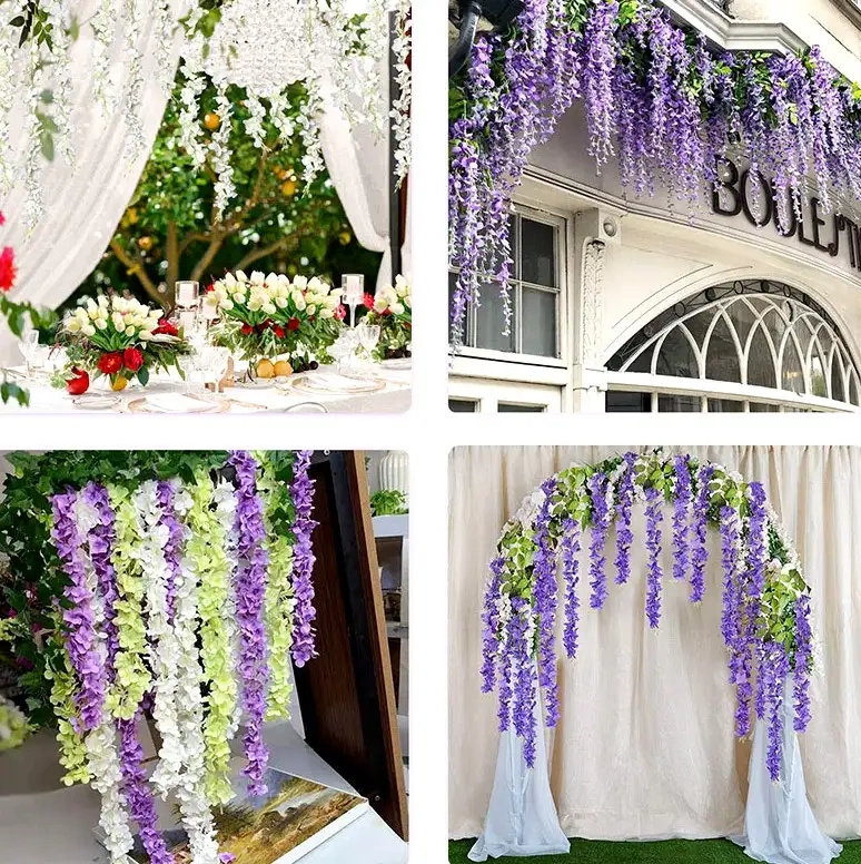 Disponibile în magazinul nostru online, cele 12 bucăți de flori agățătoare de glicină pot fi folosite pentru a crea o ghirlandă uimitoare care să pună în valoare diverse tipuri de petreceri, precum nunți, comuniuni sau aniversări.