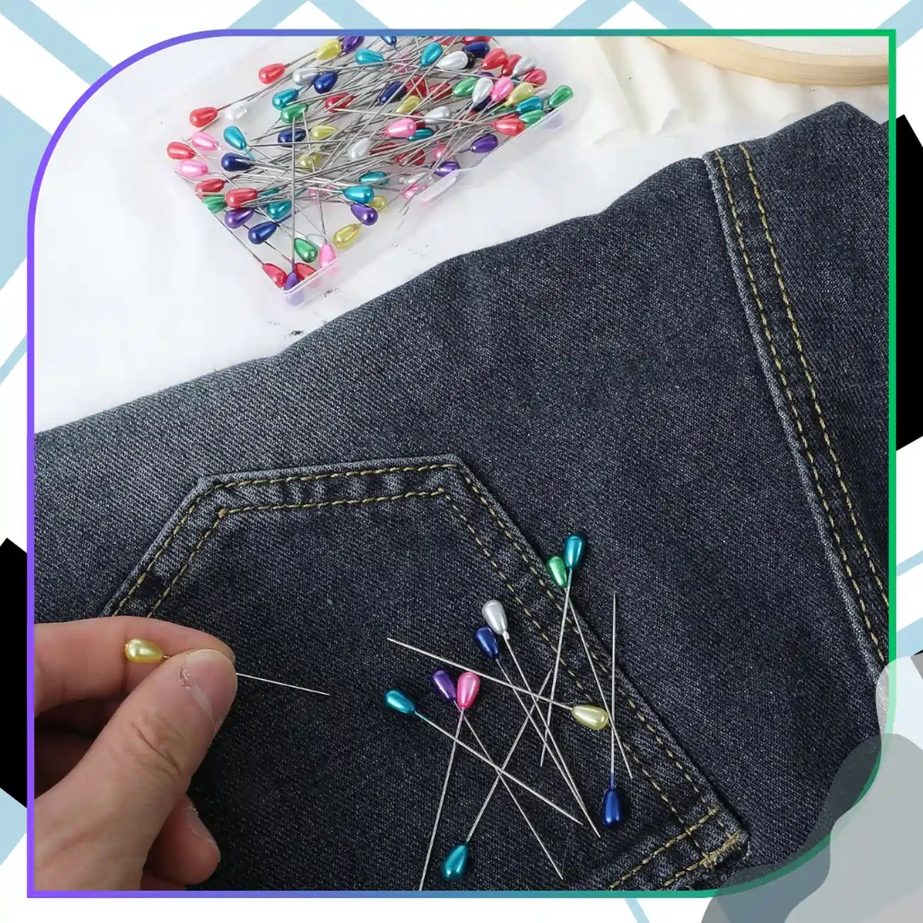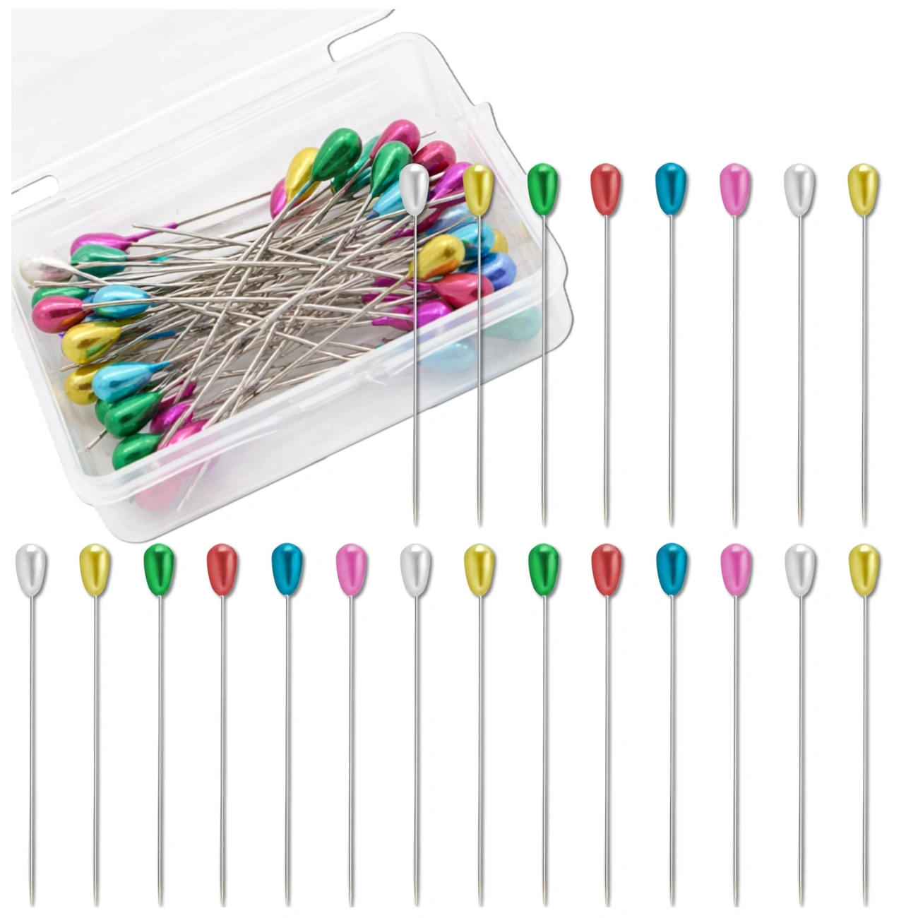 Set de 50 de ace de croitorie colorate cu cap în formă de lacrimă