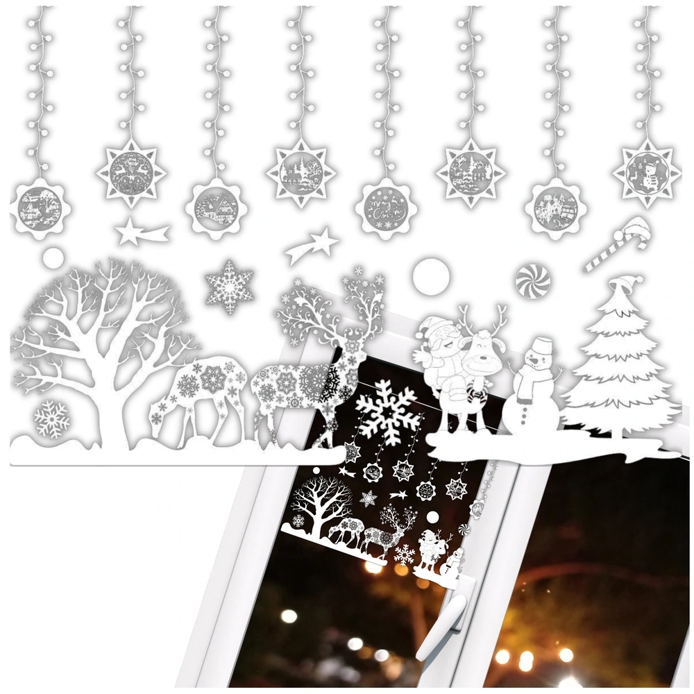 Autocolantul este realizat din materiale de înaltă calitate, ceea ce permite o ușoară și eliminarea fără probleme după sezonul de vacanță. Modelele foarte detaliate și lucrarea atentă fac ca autocolantul să arate frumos atât în timpul zilei, cât și după întuneric, mai ales când este iluminat de lumina caldă a luminilor de Crăciun. Este o alegere perfectă pentru decorarea ferestrelor din camera de zi, dormitor, bucătărie sau camera copiilor.