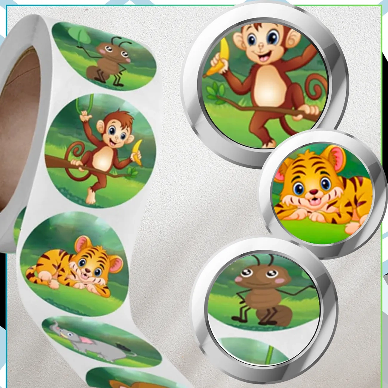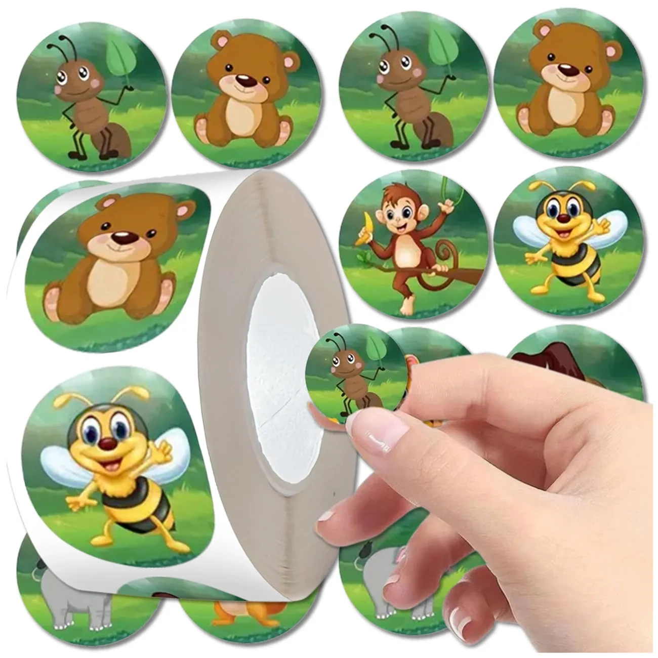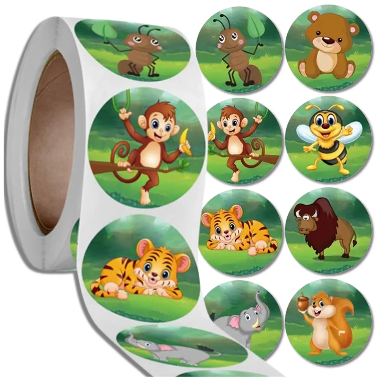 Autocolante animale junglă colorată pe rolă 500 buc DIY pentru copii