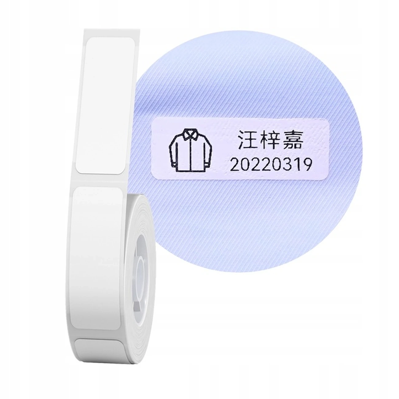 Achiziționați rulouri de etichetă de 1 dimensiune, transparentă. 14x40 mm, conținând 80 de autocolante, dedicate imprimantelor Niimbot B18, ideale pentru marcarea hainelor. Culoarea imprimării este clasică negru pe un fundal delicat, alb, care, după aplicare, arată estetic plăcut și discret pe țesături.