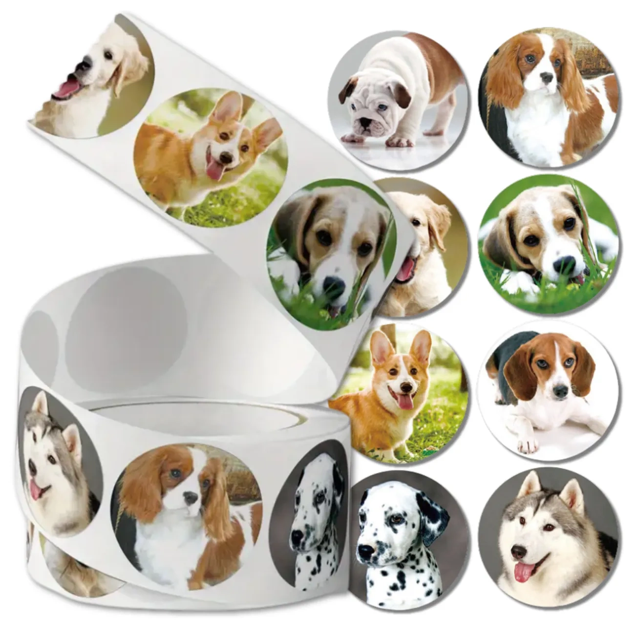 Autocolante pe rola 500 buc. Câini DIY pentru copii colorați