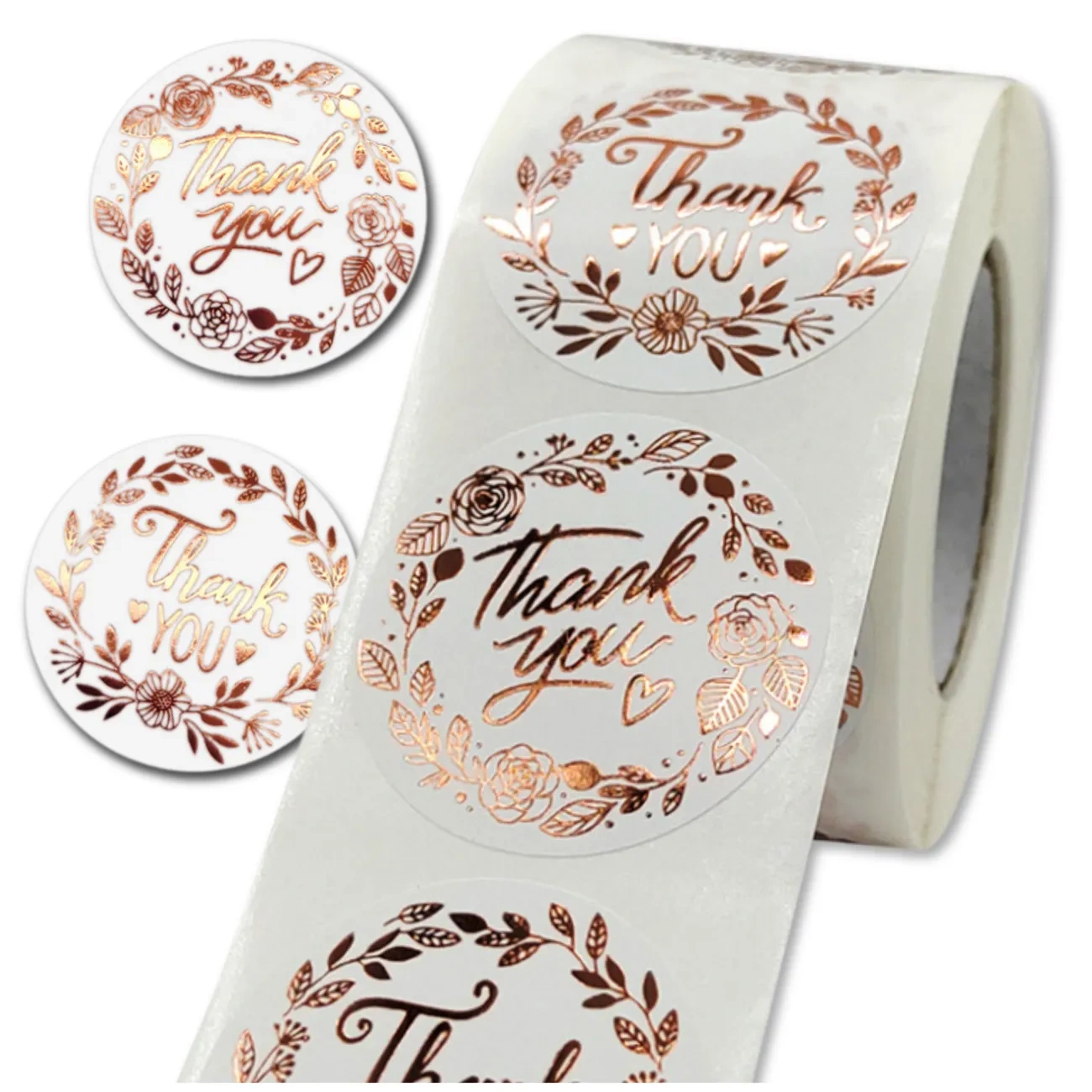 Fiecare autocolant are un suport alb și un decor aur roz, care le conferă o eleganță subtilă. Folosiți-le ca sigilii decorative pe plicuri, etichete cadou, semne pentru albume de albume sau ca o notă finală a produselor realizate manual. Este o modalitate simplă de a arăta recunoștință și de a construi o relație cu clientul dvs.!