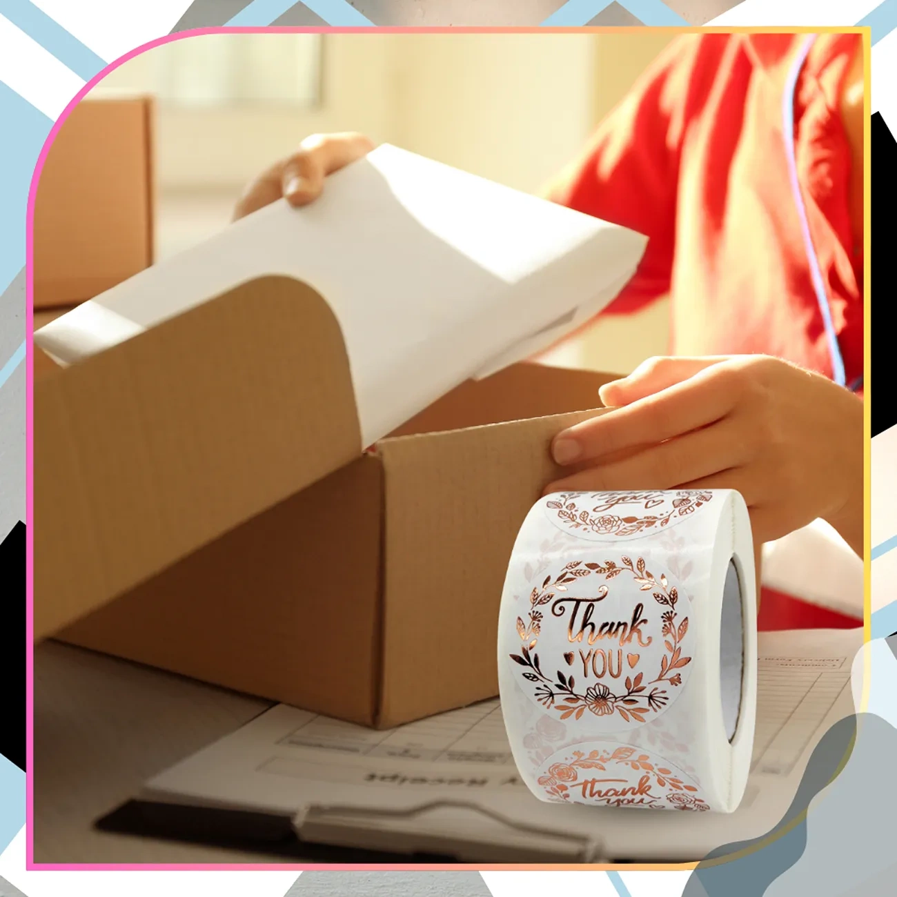 Faceți o primă impresie bună chiar din momentul în care deschideți pachetul – alegeți autocolante elegante Mulțumesc!