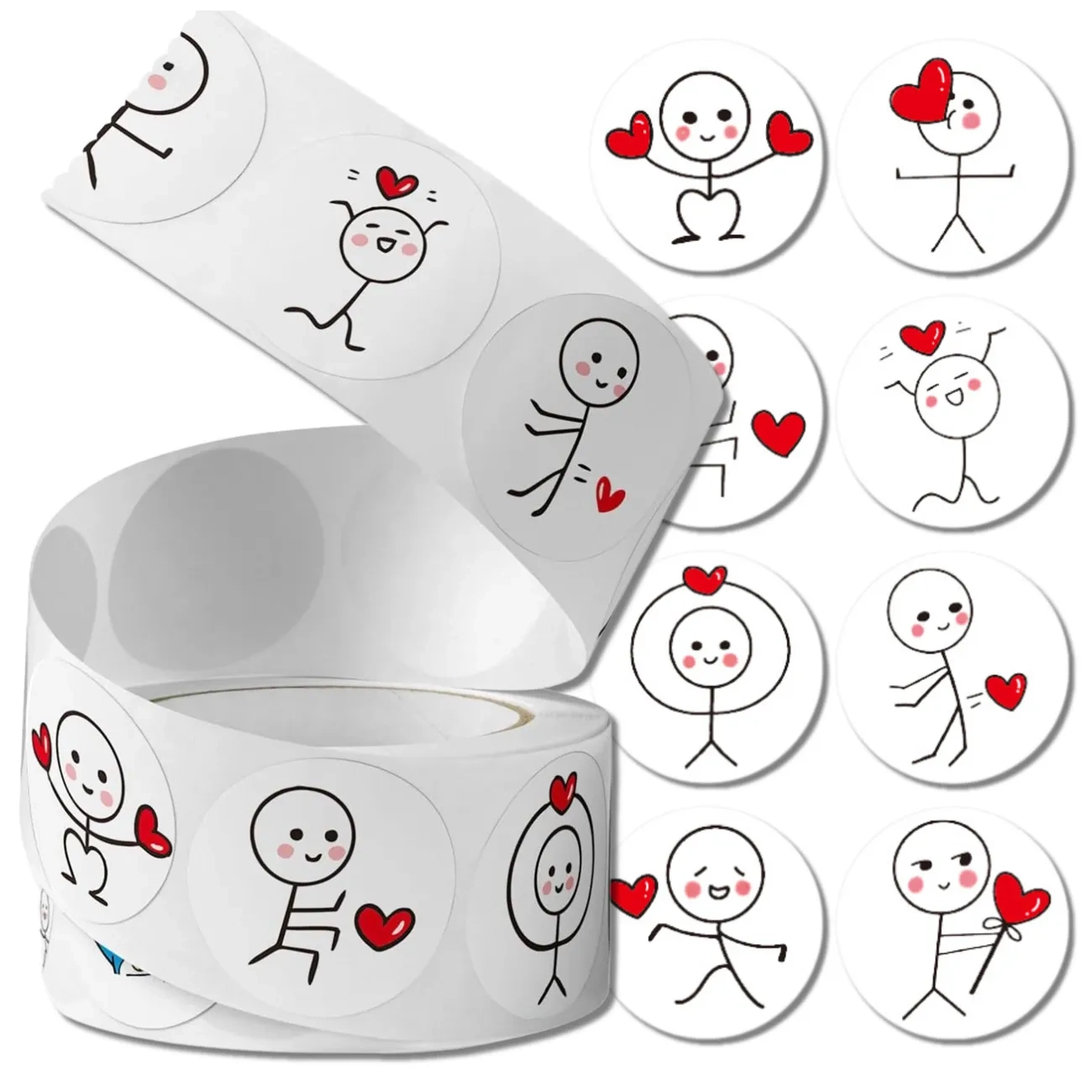 Autocolante pe rola 500 buc. DIY inima om pentru copii colorat