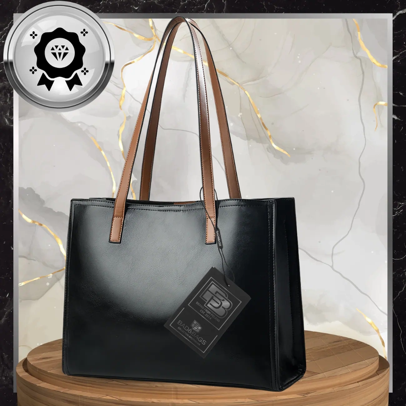 BAD&BAGS geantă de mână din piele pentru femei, cumpărător clasic din piele lăcuită neagră