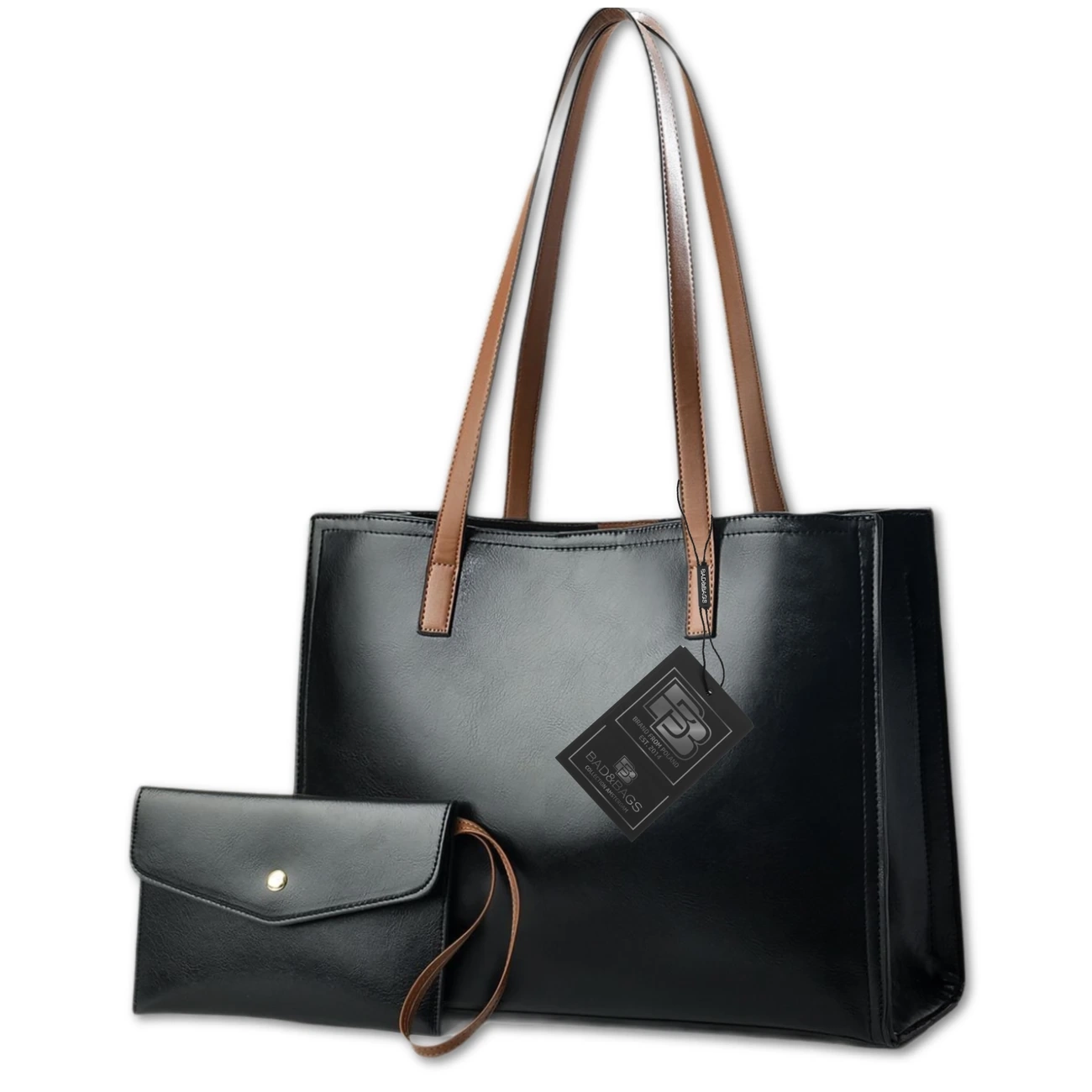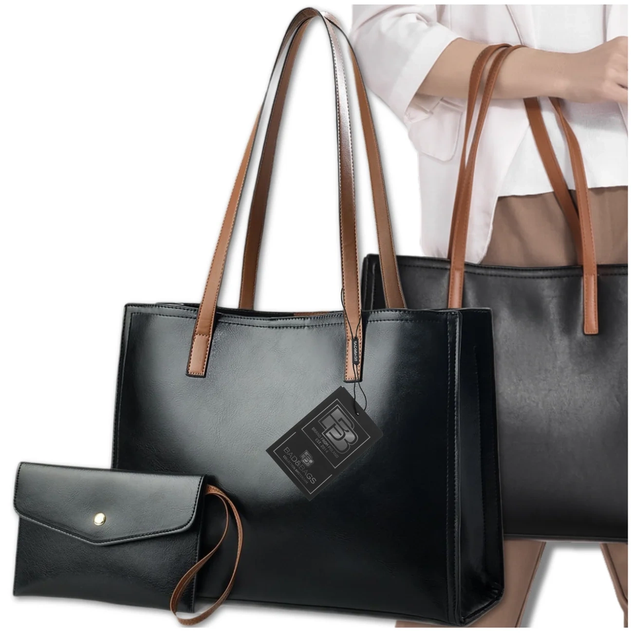 BAD&BAGS – Geantă de mână neagră pentru femei cu husă suplimentară | Piele ecologică | Brand polonez Premium