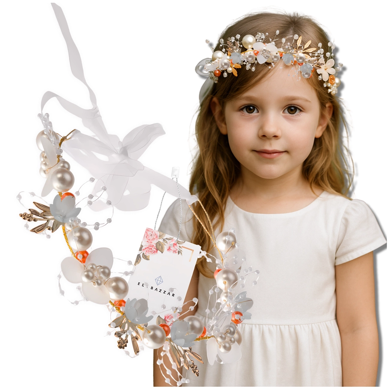 Fixat cu o panglică sau introdus în păr, oferă o atașare sigură și confortabilă pentru multe ore. O poți folosi și ca coronă de comuniune sau cadou pentru o persoană dragă – natura sa universală o face potrivită pentru mai multe stiluri.