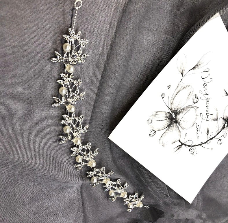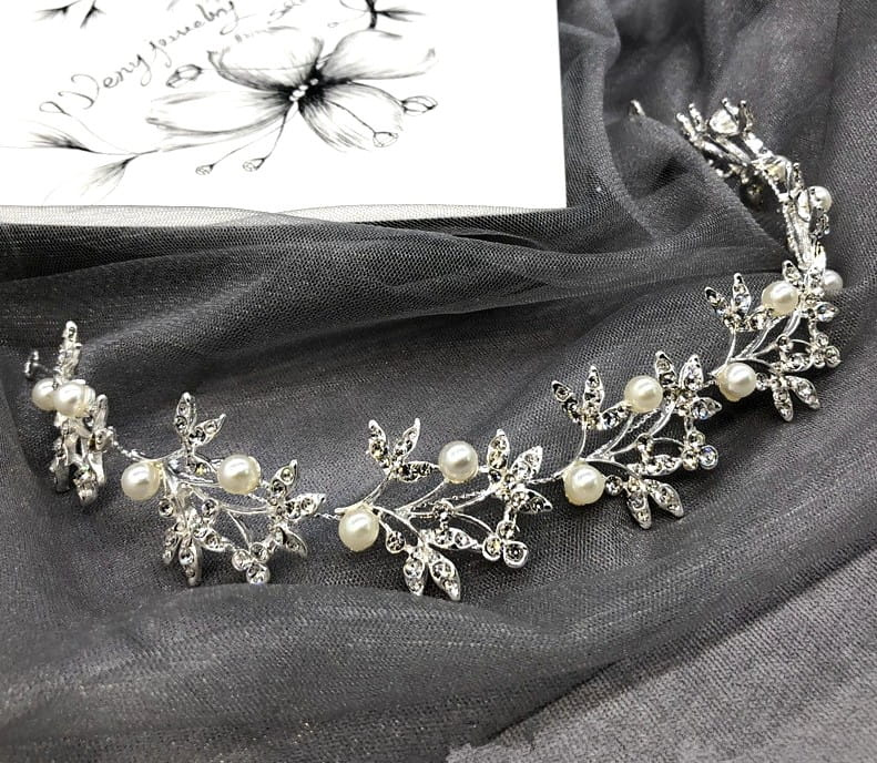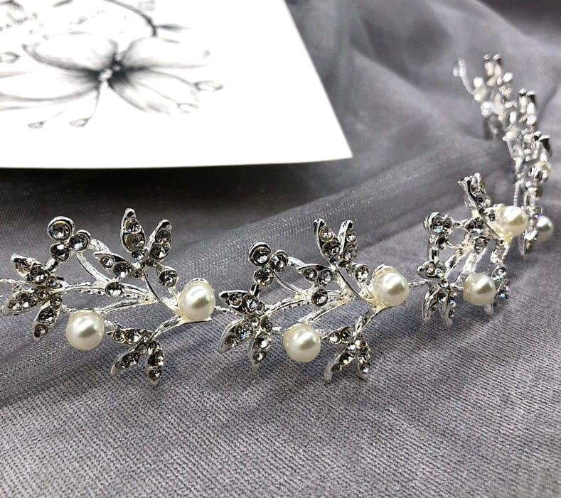 O bentiță încântătoare cu un design modern sub forma unei ramuri delicate cu perle și cristale. Ideală pentru stilul boho, vintage și rustic.