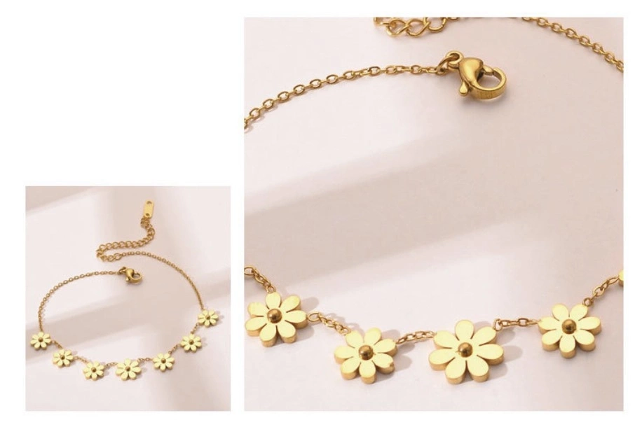 Brățara la modă din flori din oțel chirurgical auriu este fixată cu un cârlig de fixare durabil, care cu siguranță nu se va desprinde în cel mai puțin așteptat moment.