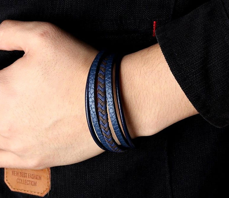 Brățară din piele pentru bărbați punk din oțel inoxidabil