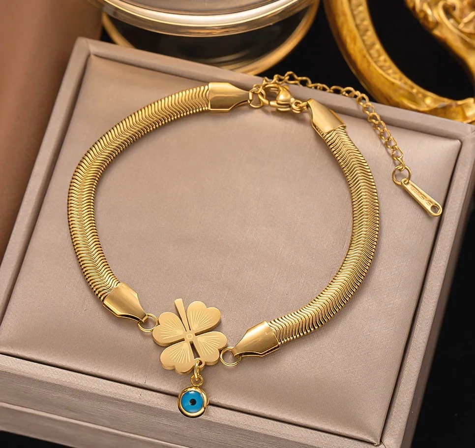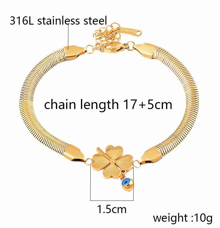 Această brățară este un fel de amuletă care protejează împotriva răului. Cei care o poartă pot fi siguri că norocul nu îi va abandona în viață. Lungimea totală a bijuteriei este de 17 cm. Are o închidere de tip carabină, care o protejează eficient de a fi pierdută.