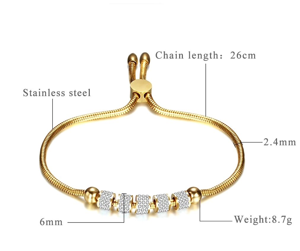 Brățara de aur recomandată din oțel chirurgical elegant cu zirconii va stârni cu siguranță admirația fiecărei femei care apreciază bijuteriile discrete, dar eficiente. Poate fi un accesoriu excelent pentru orice styling pentru o ocazie specială, dar și pentru fiecare zi sau pentru serviciu. O puteți purta atât cu bluze și rochii, cât și cu tricouri.
