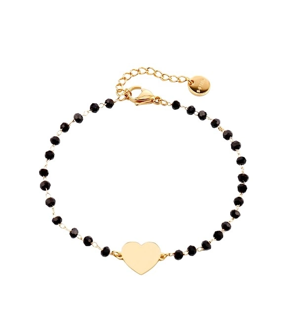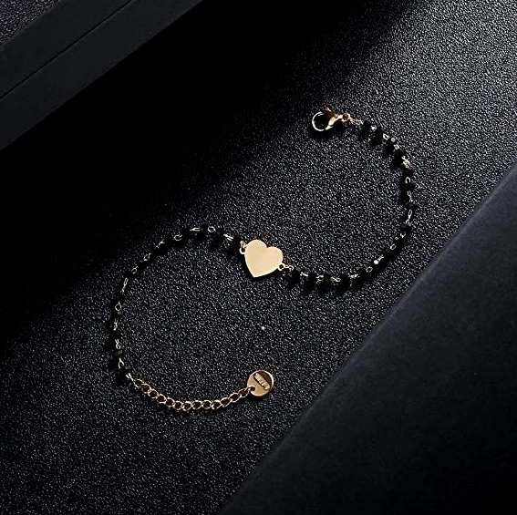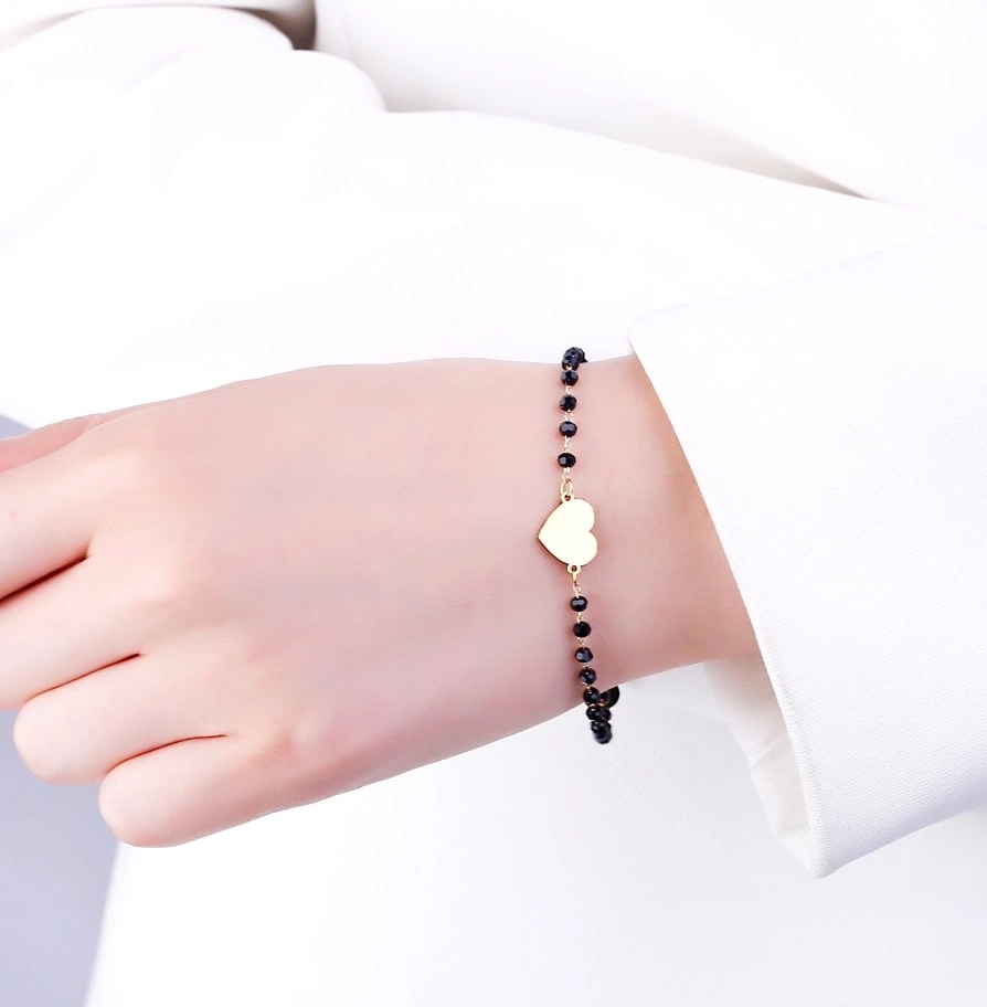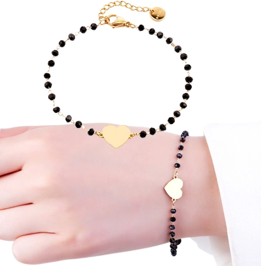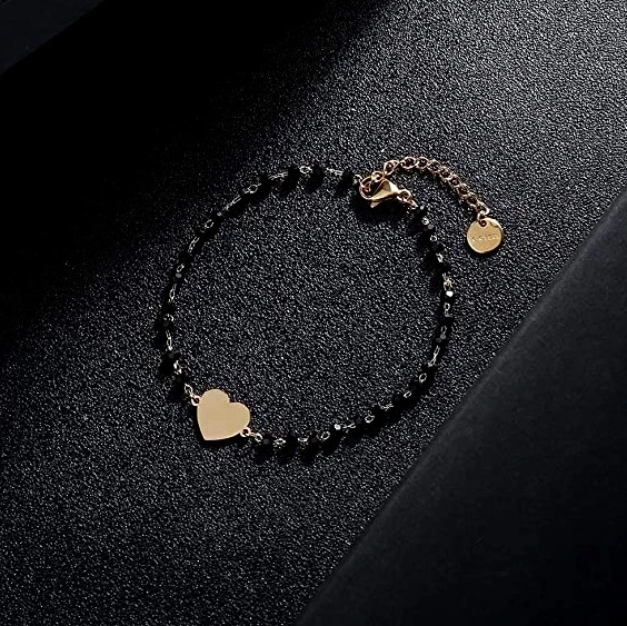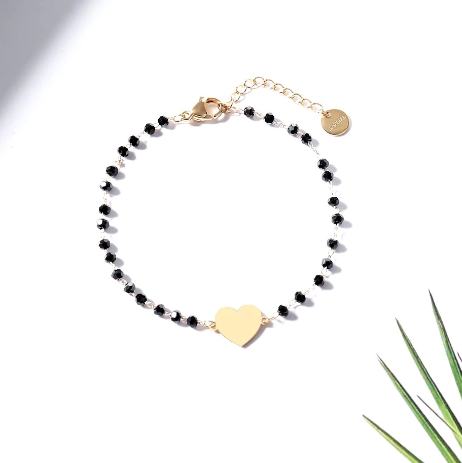 Mărgelele întunecate și lustruite adaugă farmec și eleganță produsului, care este această brățară inimă placată cu aur mărgele din oțel chirurgical. Întregul creează un design unic, care cu siguranță va atrage atenția cu farmecul său.