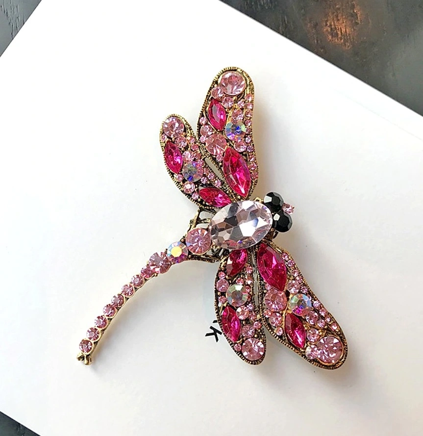 Broșă elegantă Dragonfly , bogat decorată cu zirconii și cristale