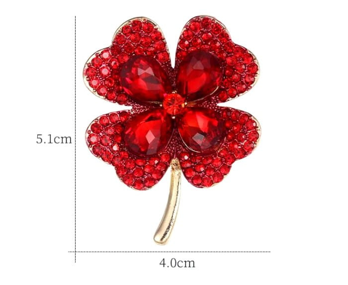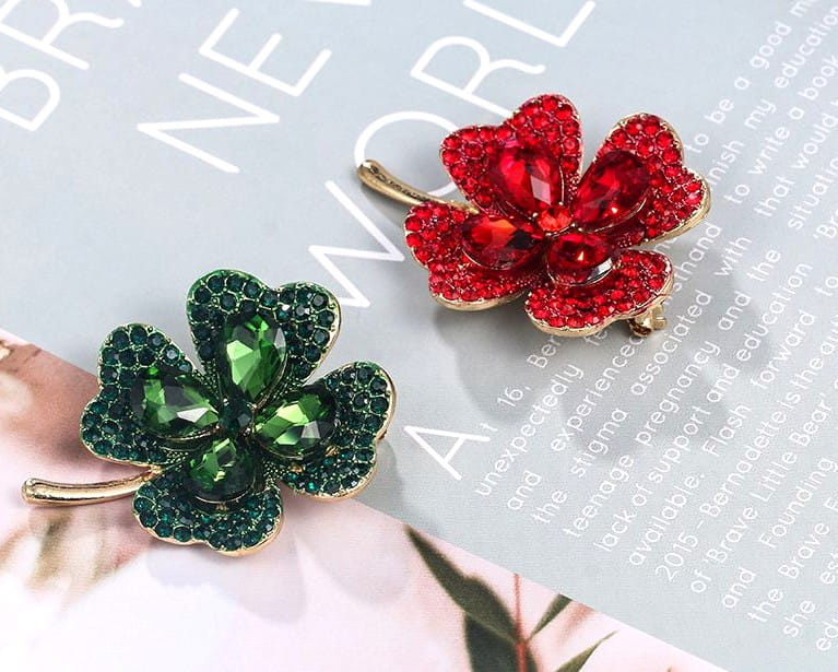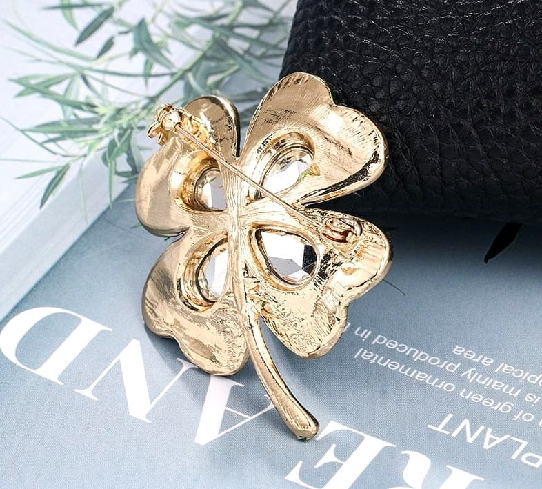 Broșă elegantă, cu un motiv de trifoi cu patru foi decorat cu zirconii