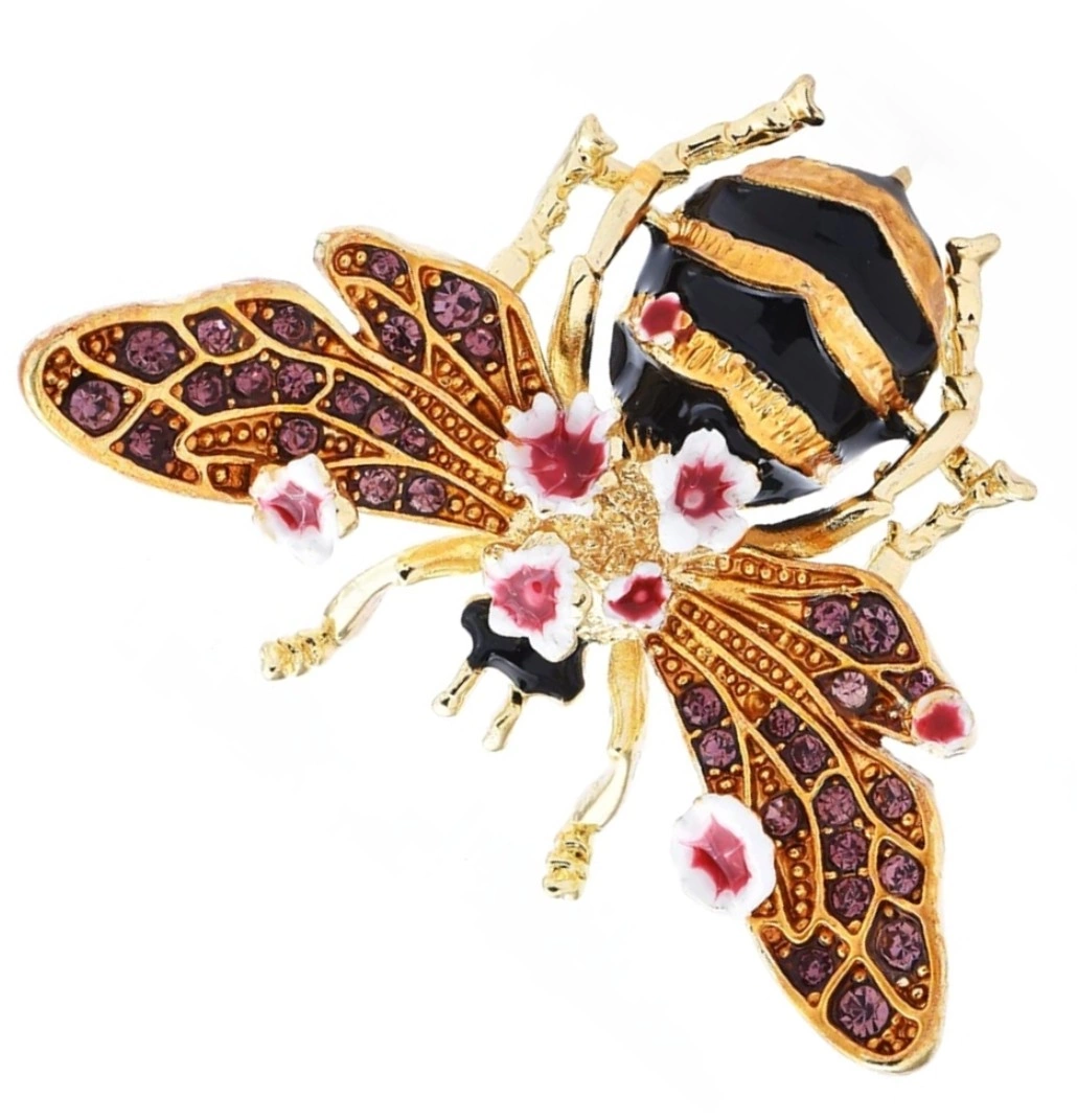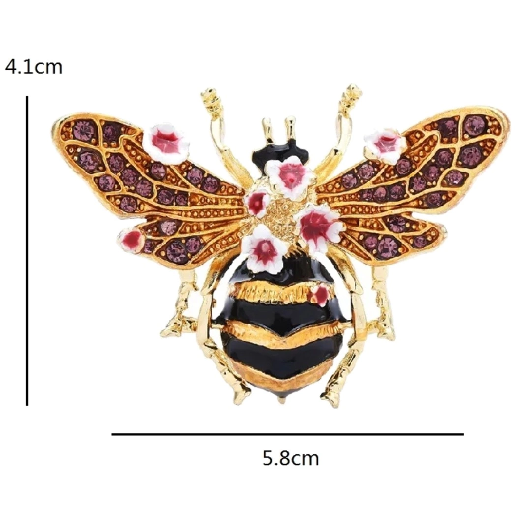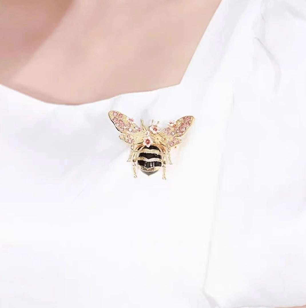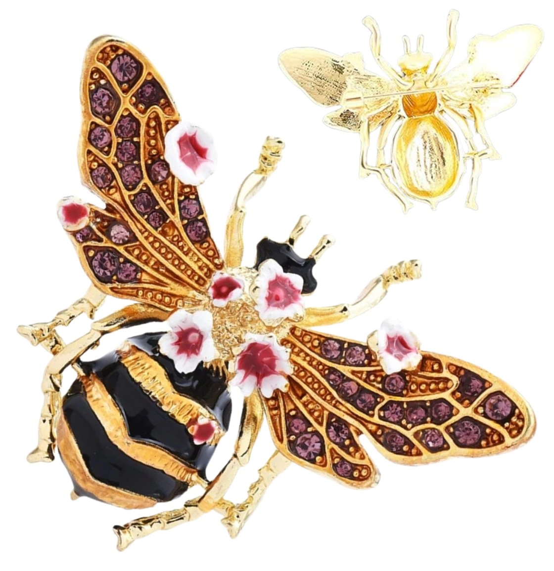 Această broșă elegantă este bogat împodobită cu zirconiu cubic pentru un plus de strălucire și lux, și este fermecător finisată cu flori mici pentru o notă unică. Detaliile cu albine emailate adaugă profunzime și farmec vizual, făcând din aceasta alegerea perfectă pentru orice femeie care apreciază accesoriile unice.