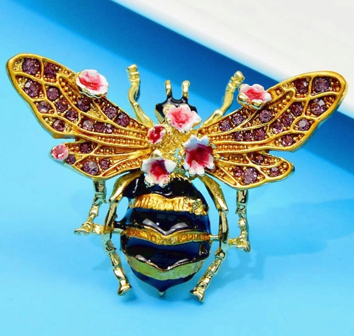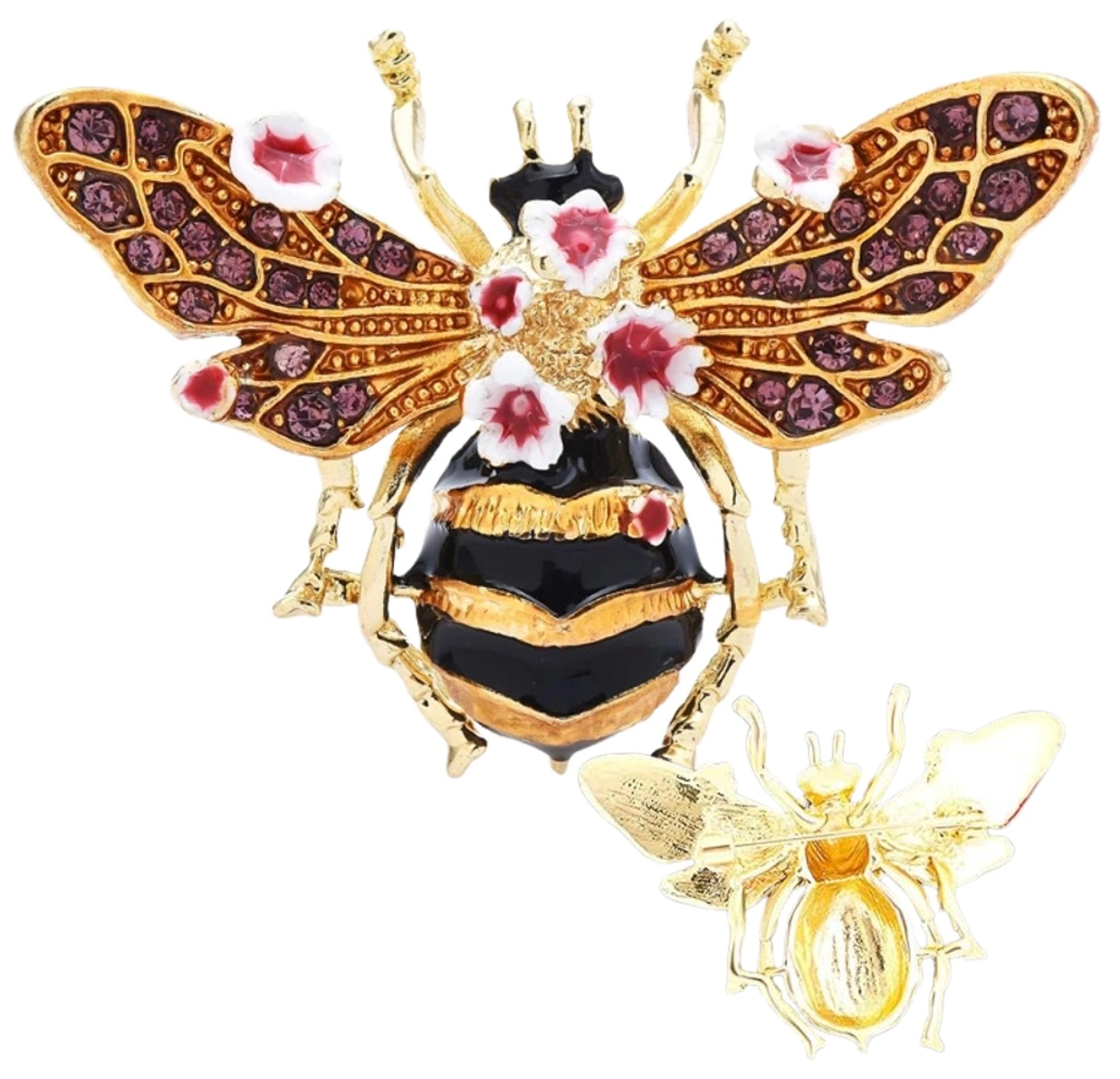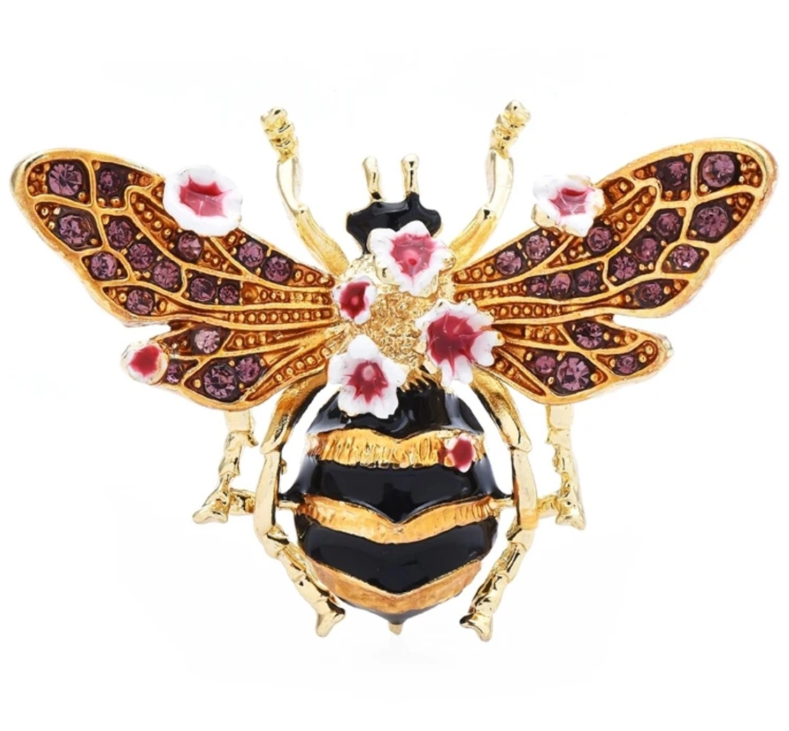 Această broșă elegantă este bogat împodobită cu zirconiu cubic pentru un plus de strălucire și lux, și este fermecător finisată cu flori mici pentru o notă unică. Detaliile cu albine emailate adaugă profunzime și farmec vizual, făcând din aceasta alegerea perfectă pentru orice femeie care apreciază accesoriile unice.