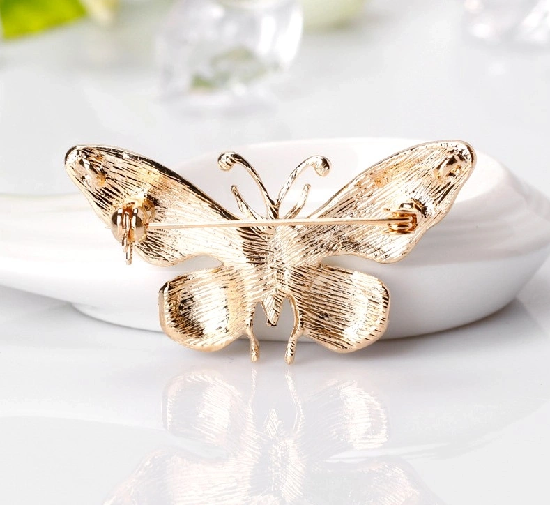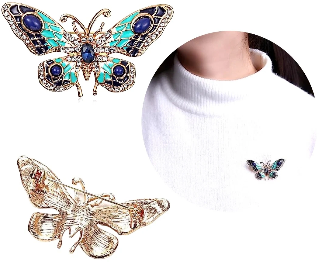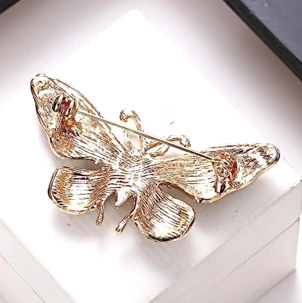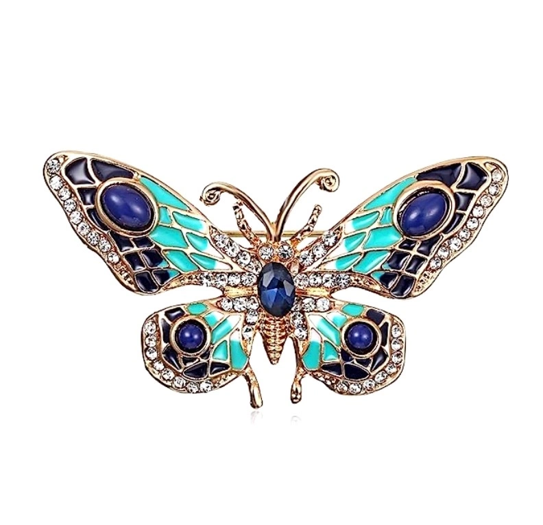 Broșă elegantă cu un fluture colorat , bogat decorat cu zirconii și cristale