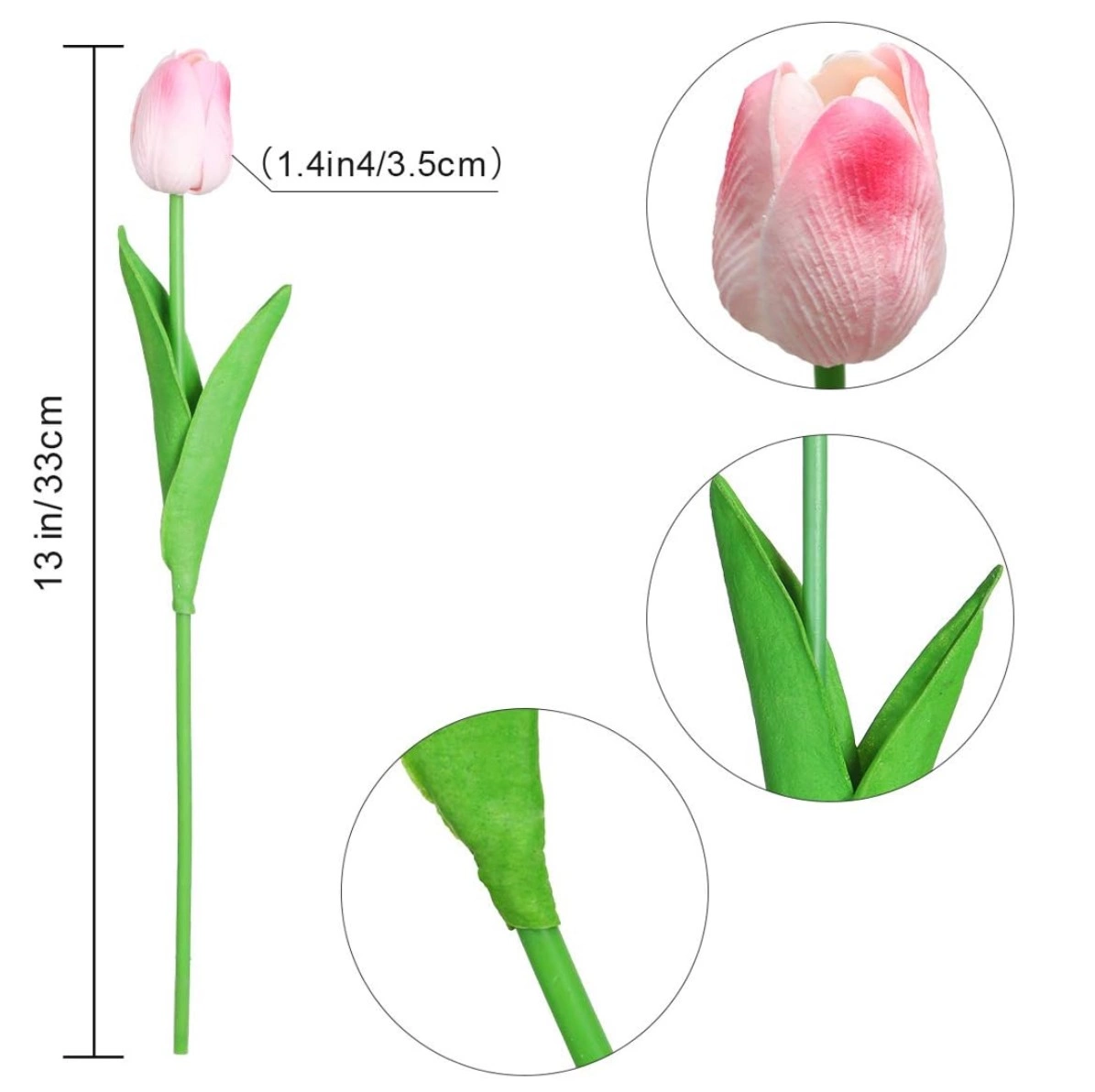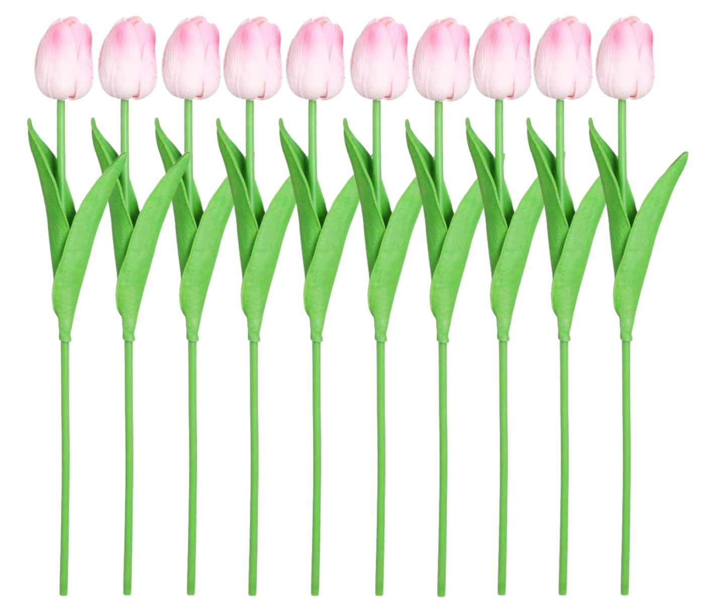 Aspectul realist al lalelelor roz și al tulpinilor lor verzi face ca florile noastre artificiale să semene cu cele vii. Datorită durabilității lor, acestea pot fi folosite ca decorațiuni pe tot parcursul anului, indiferent de anotimp. Fiecare buchet este vândut ca un întreg, permițând aranjamente rapide și ușoare.