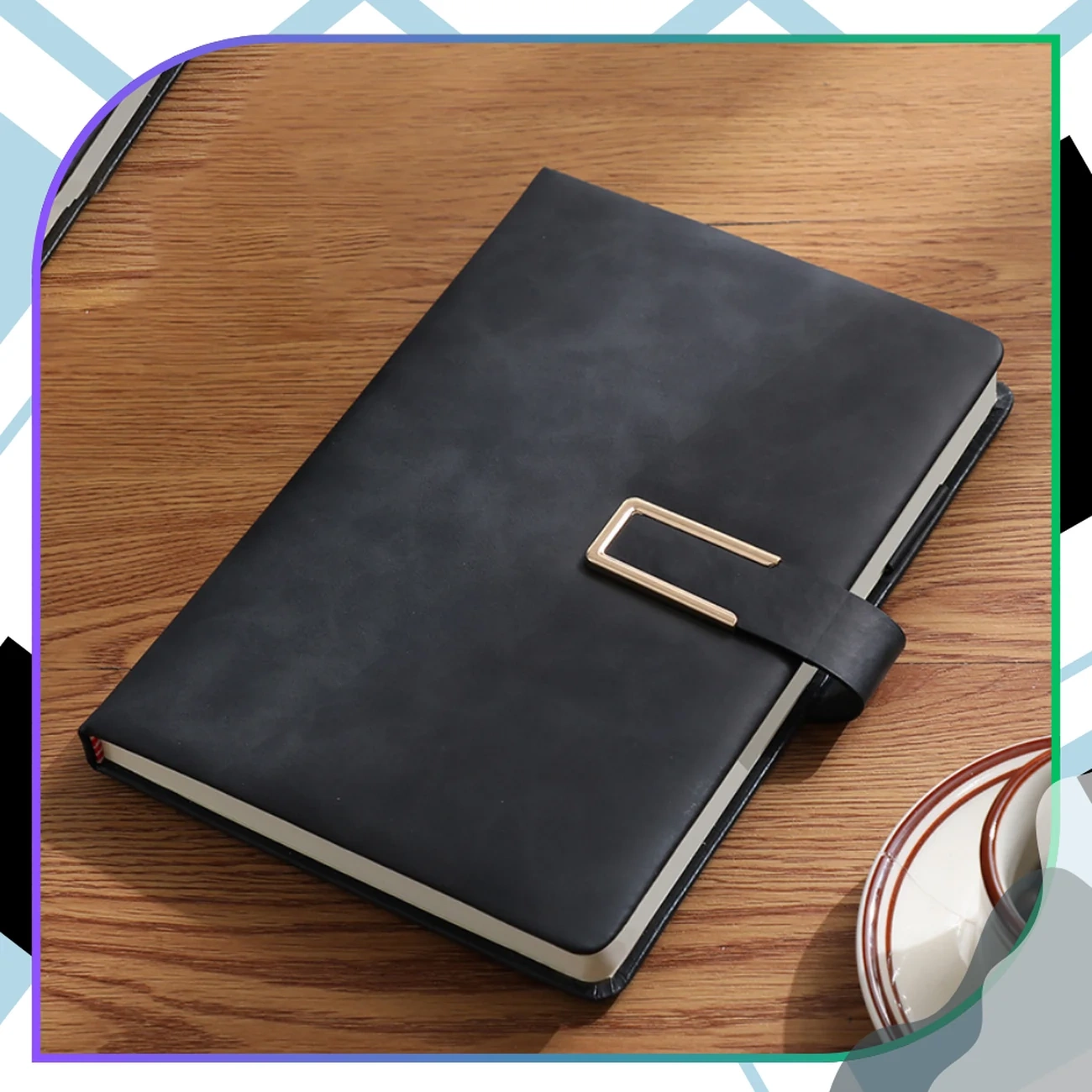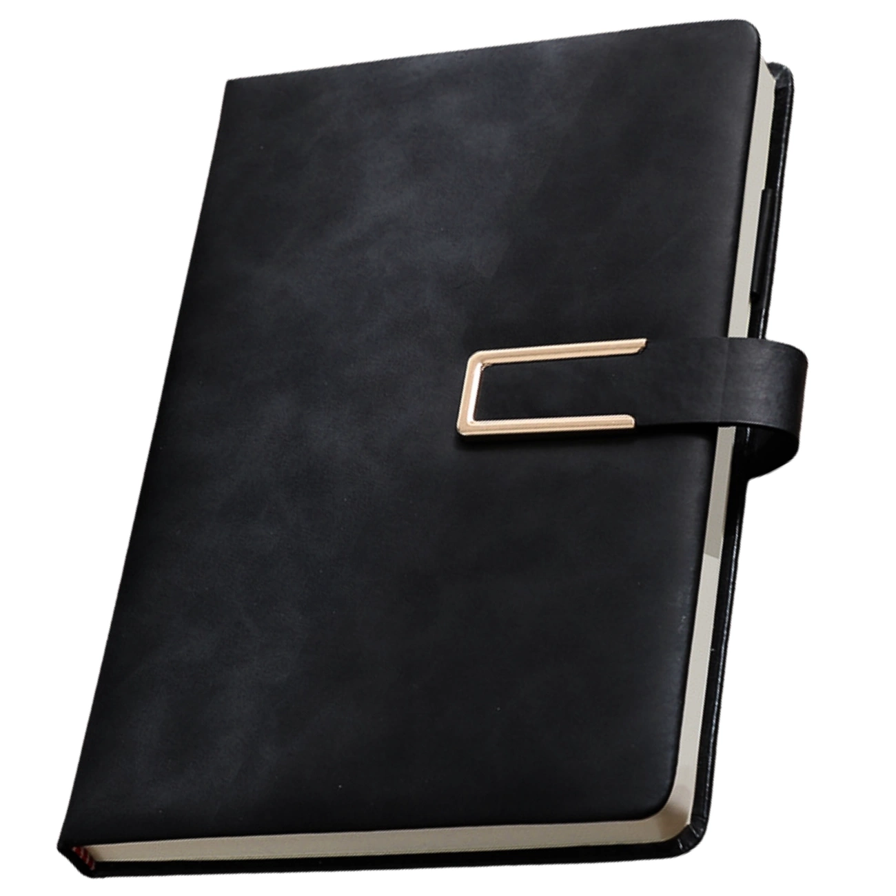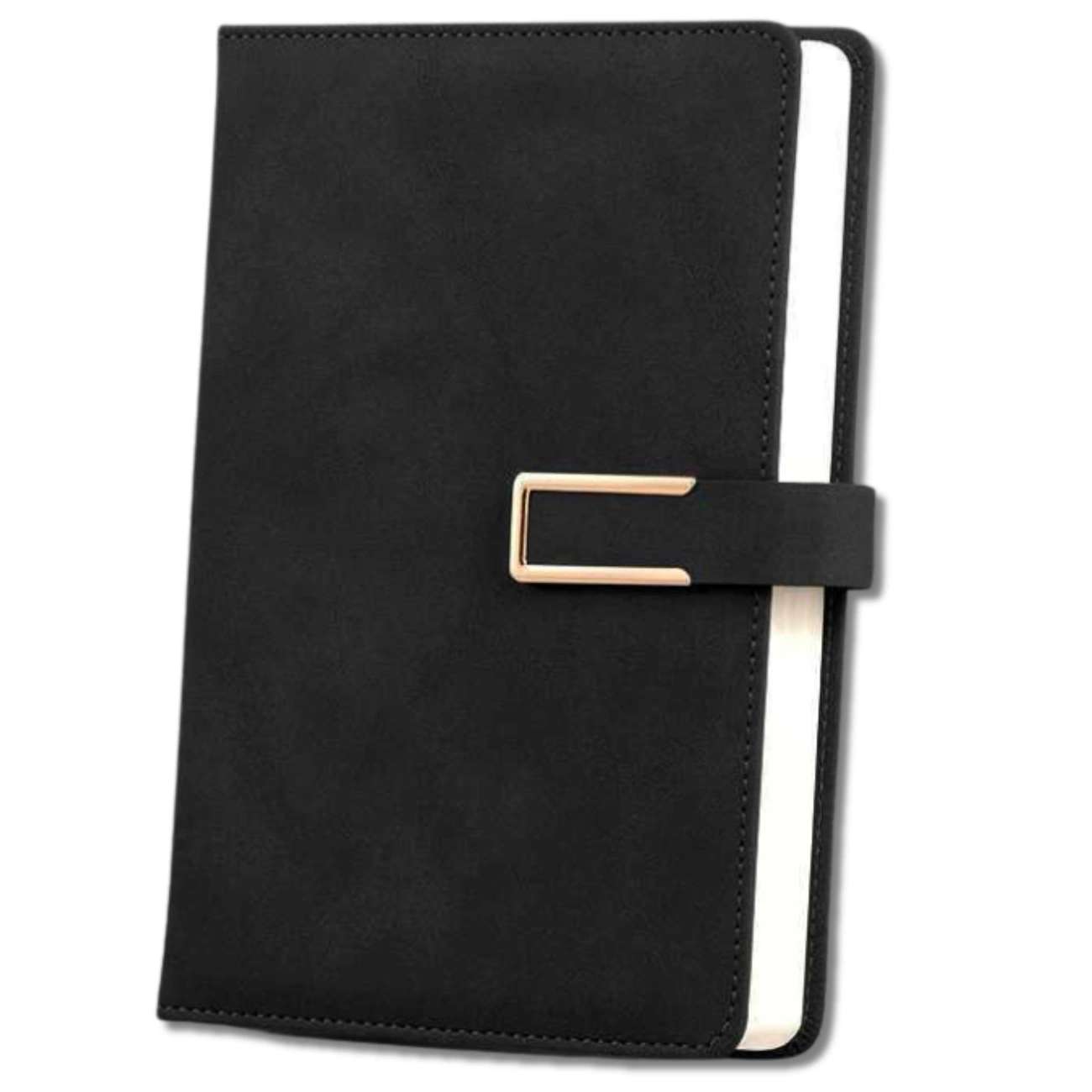 Descoperiți caietul A5 unic, elegant și funcțional, perfect pentru serviciu, școală sau planificarea zilnică. Coperta rigidă din piele PU de înaltă calitate îi conferă un aspect elegant, în timp ce închiderea cu capsă metalică aurie adaugă clasă și un caracter unic. Designul său minimalist și uniform face ca acest caiet negru să impresioneze prin simplitatea și durabilitatea sa.