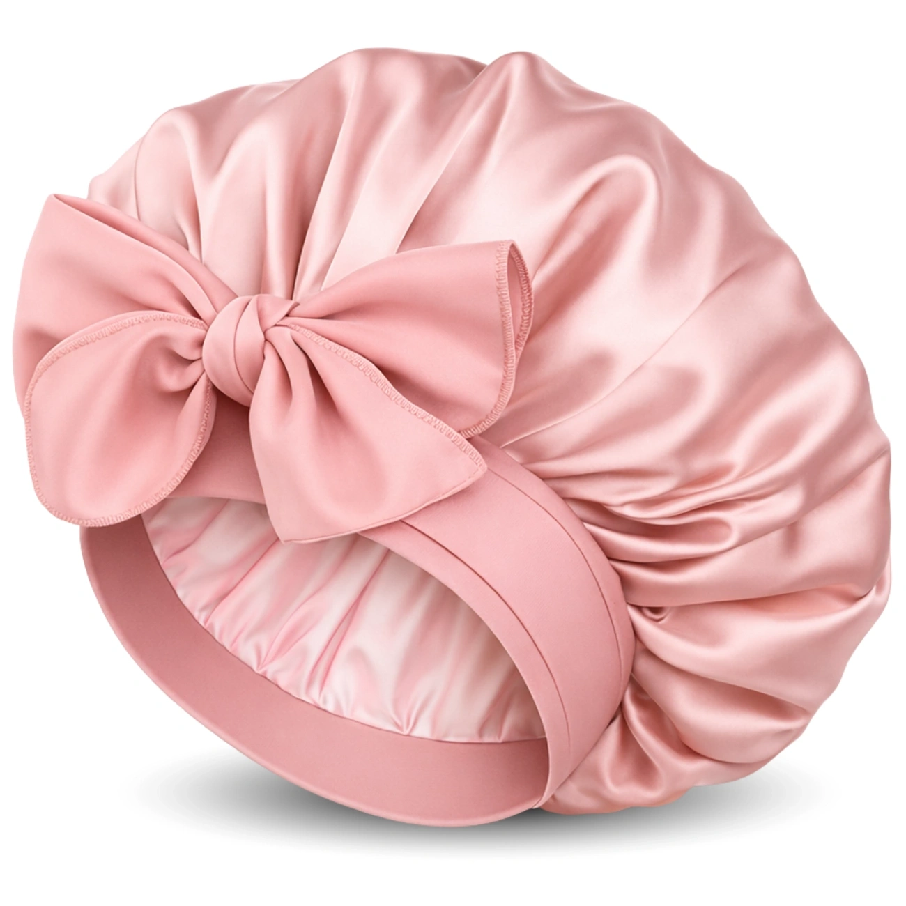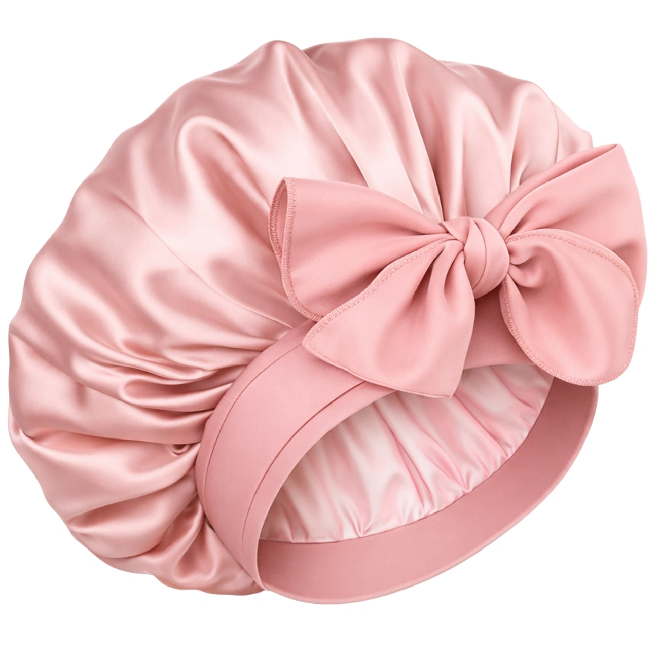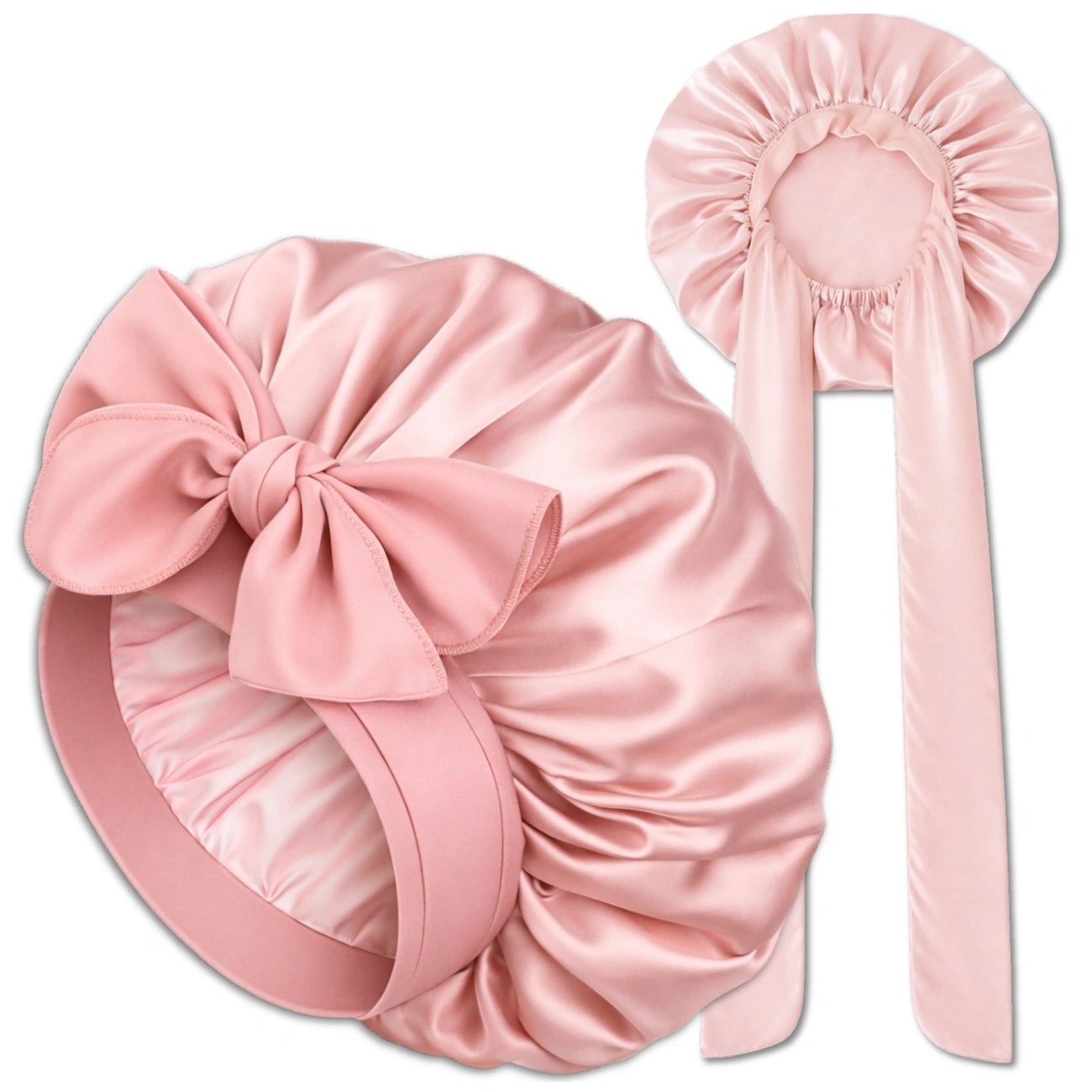 Casca de dormit roz satinat cu panglici pentru protecție