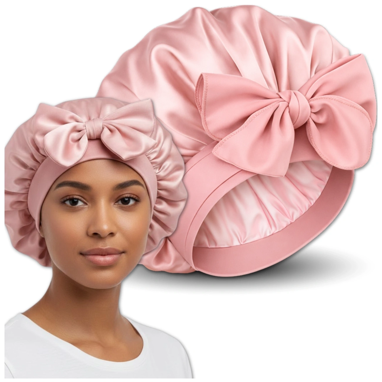 Această bonetă de dormit din satin roz este o alegere excelentă pentru cei care doresc să aibă grijă eficient de sănătatea și aspectul părului lor în timp ce dorm. Produsul este nou și fabricat din satin de înaltă calitate (100% poliester), care, datorită structurii sale netede și delicate, minimizează frecarea părului de pernă.