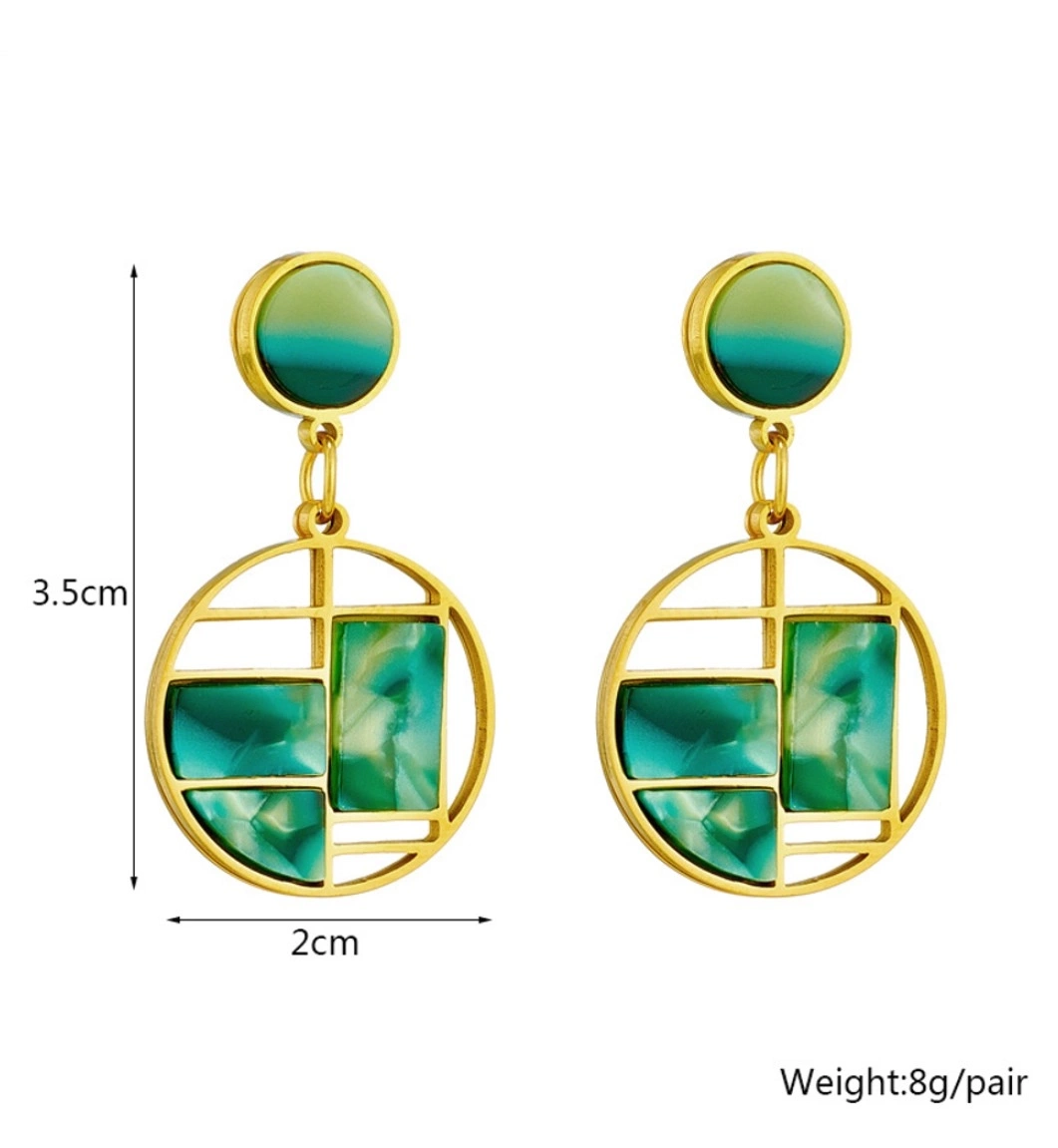 Cerceii agățători din oțel chirurgical cu cercuri verzi rotunde sunt un produs de bijuterie care poate fi un accesoriu excelent pentru o ținută de seară sau de afaceri. De asemenea, va funcționa bine pentru uzura de zi cu zi. Orice femeie va arăta minunat în acești cercei.