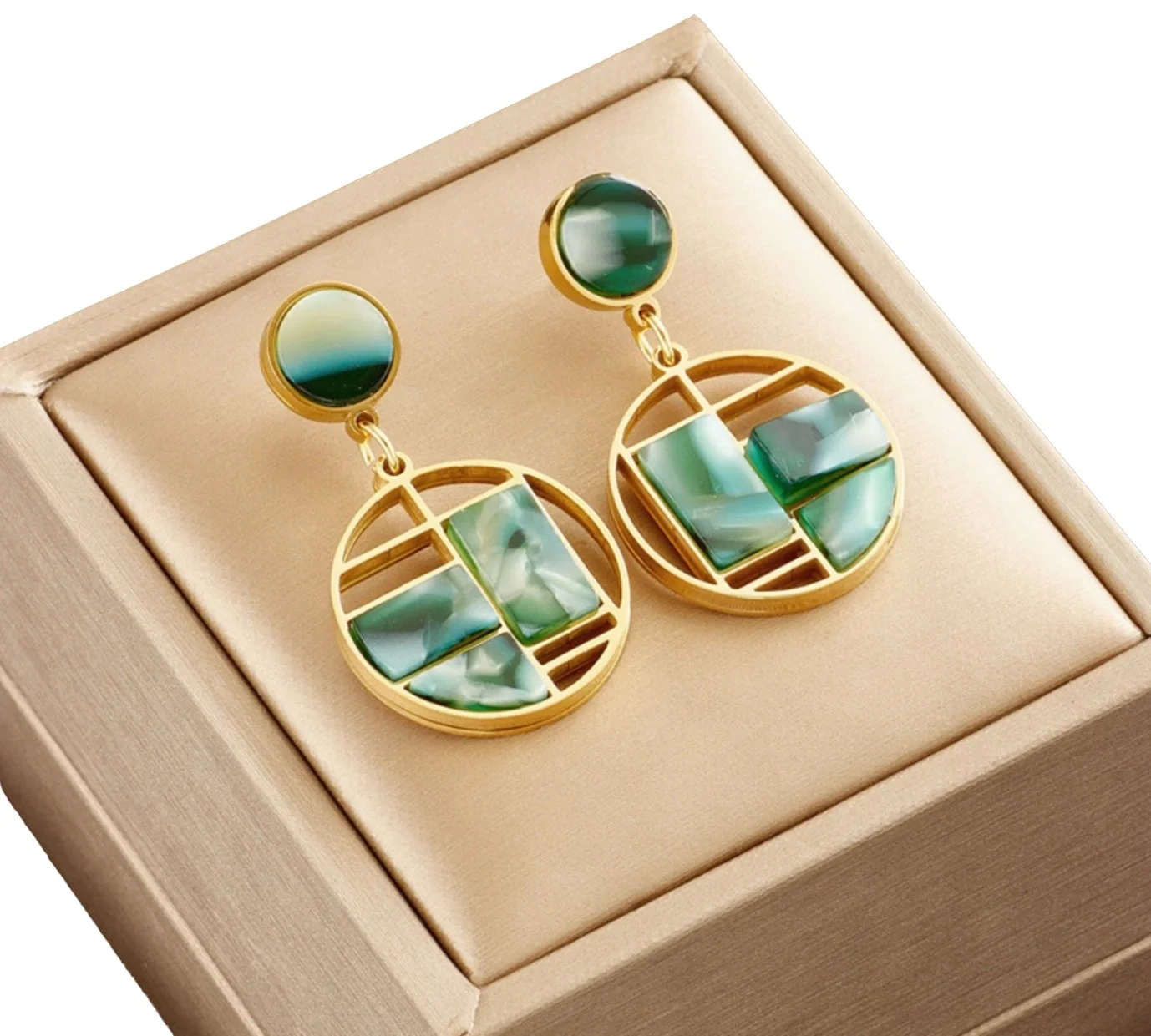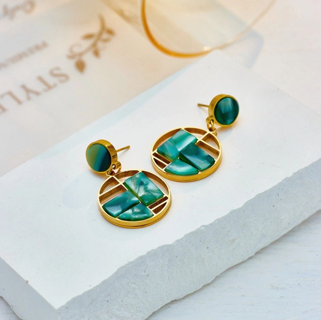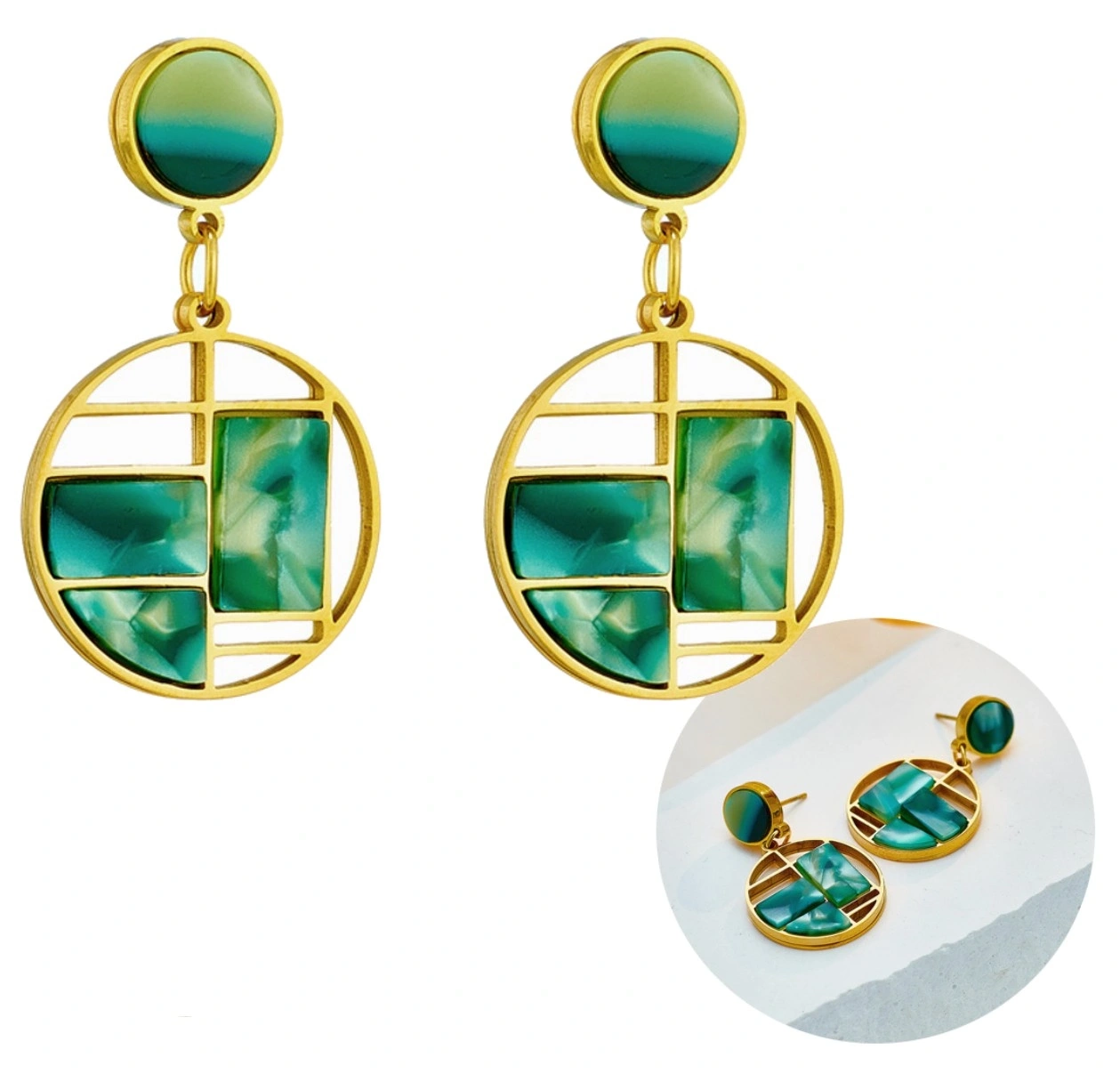 Bijuteriile exclusive, cum ar fi cerceii agățători din aur din oțel chirurgical cercuri verzi rotunde, trezesc interesul multor persoane. Produsul pe care îl oferim este recomandat femeilor cărora le place să iasă în evidență din mulțime. Se caracterizează prin design original. Prin aspectul său, această bijuterie face referire la stilul Art Deco.