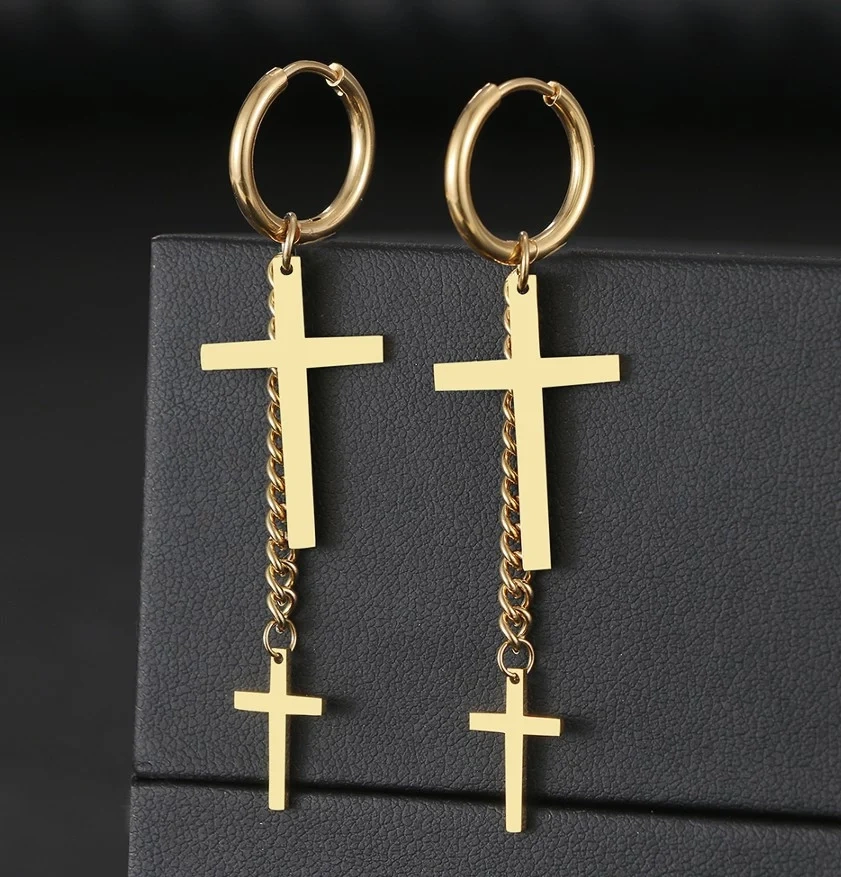 Cercei cruce de aur, otel chirurgical, eleganti, agatatori