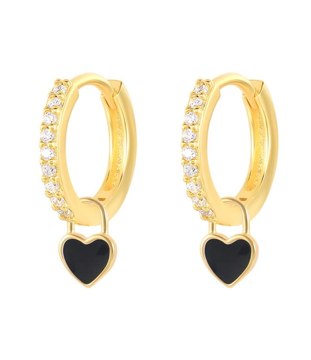 Cercei eleganți din oțel chirurgical 316L (oțel inoxidabil) - cercuri cu zirconii și o inimă neagră