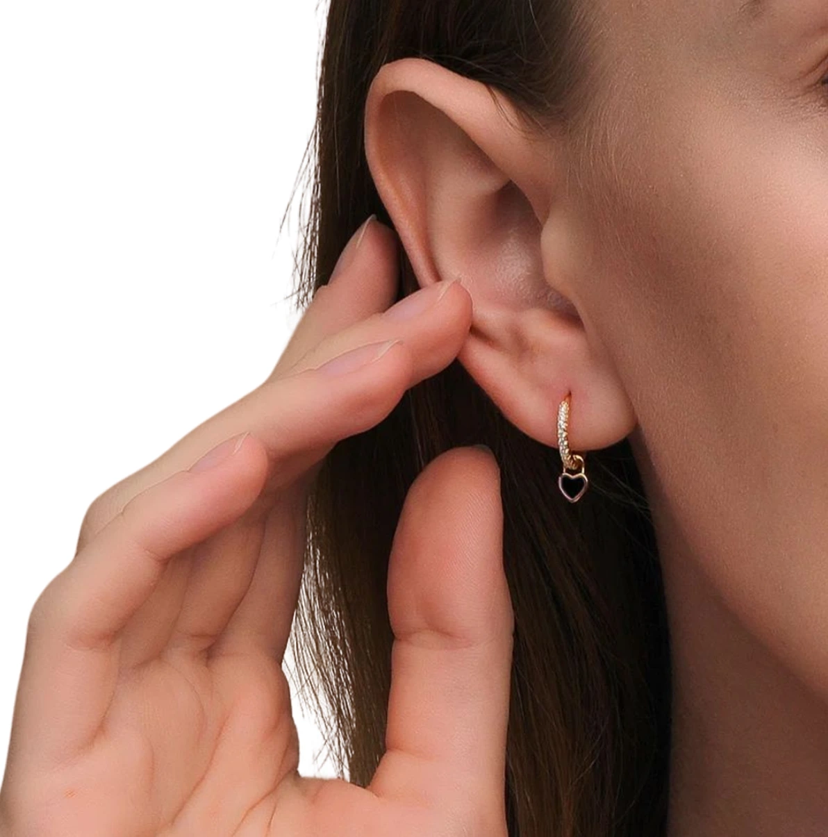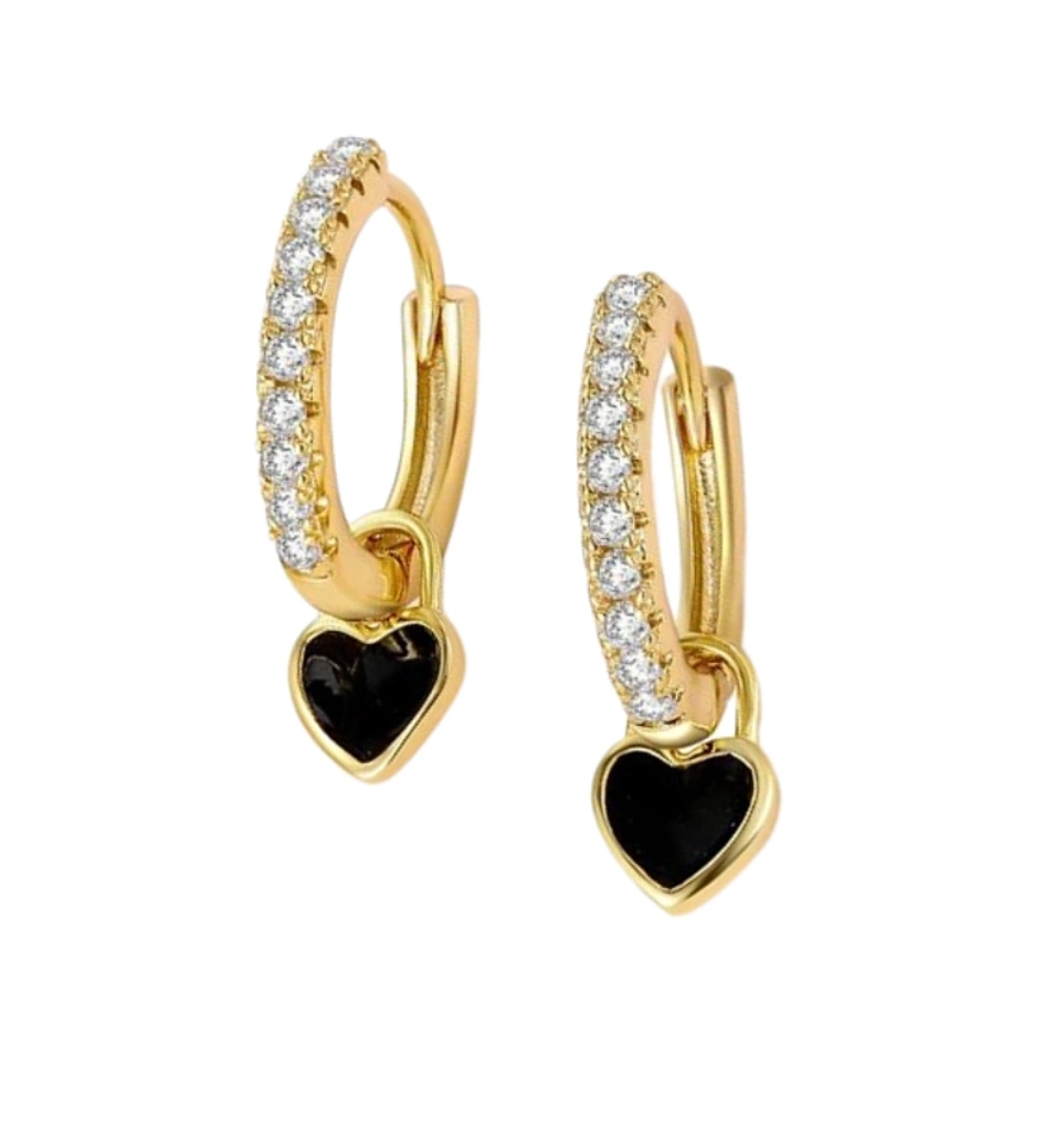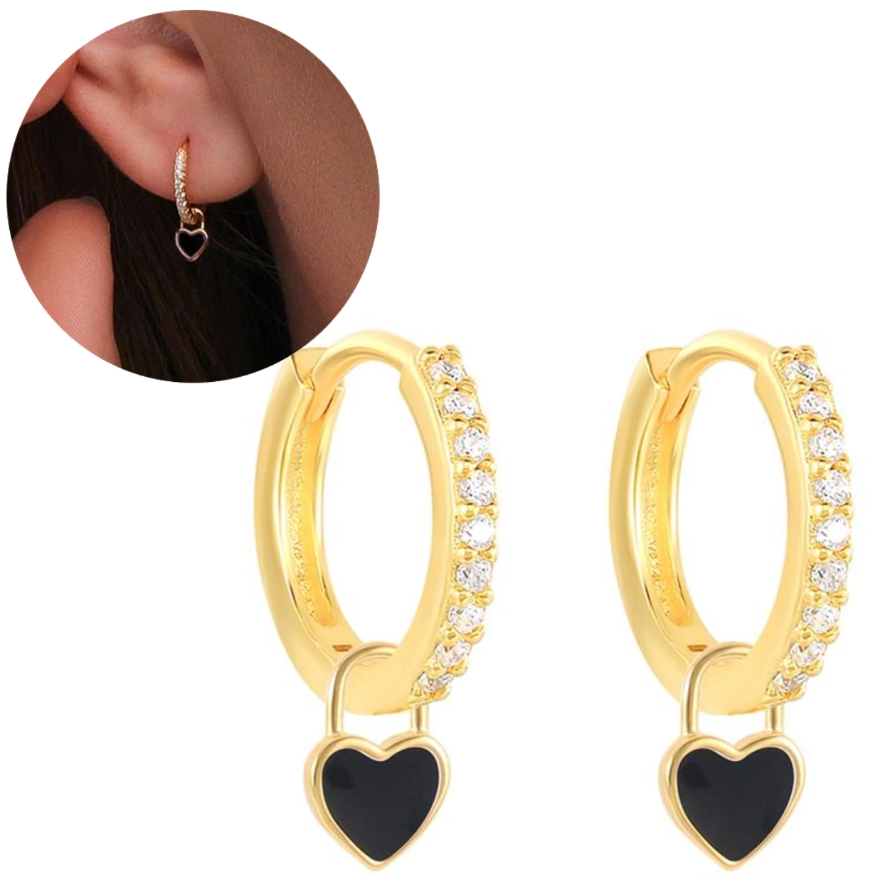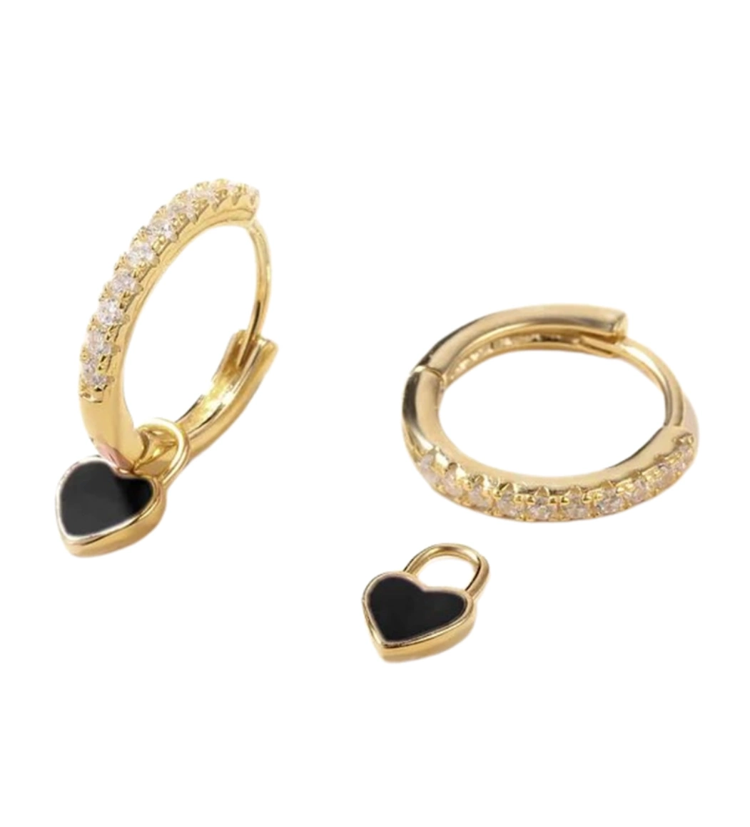 Vă prezentăm noii noștri cercei Cerc elegant, sofisticați și moderni, realizați din oțel chirurgical 316L (oțel inoxidabil) de înaltă calitate. Ornați cu zirconii cubice strălucitoare și o inimă neagră fermecătoare, acești cercei sunt alegerea perfectă pentru femeia care dorește să adauge o notă de eleganță și mister look-ului său.
