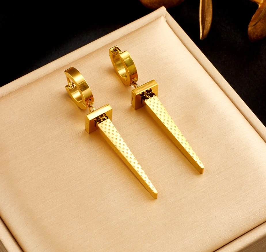 Cercei lungi din aur din oțel chirurgical eleganți - minimalism la modă