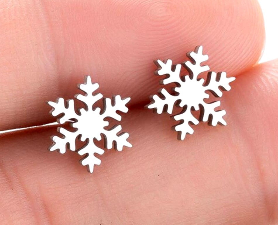 Cercei mici din argint, oțel chirurgical, fulg de nea