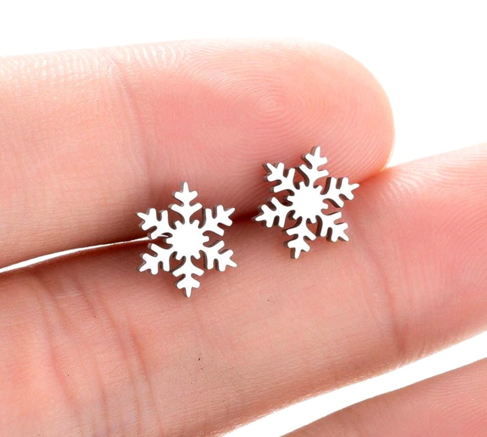 Cercei mici din argint din oțel chirurgical fulg de zăpadă - decor subtil