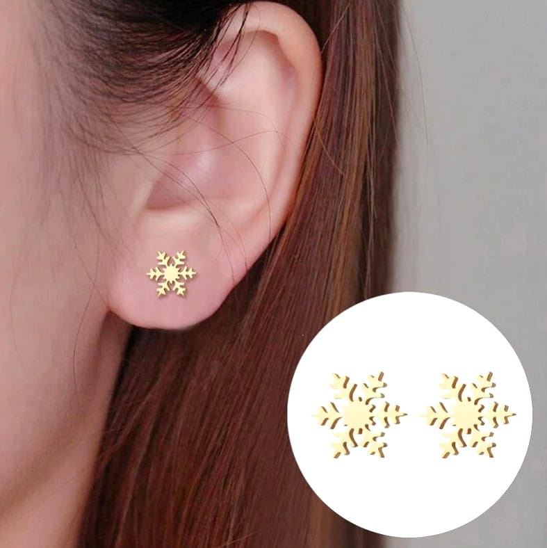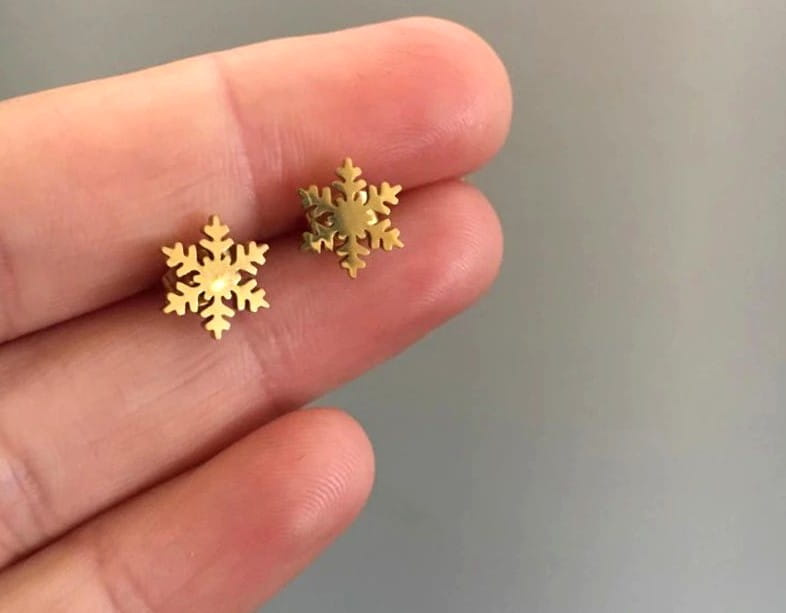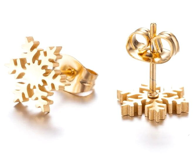 Cercei mici aurii cu fulg de zăpadă din oțel chirurgical - produsul perfect