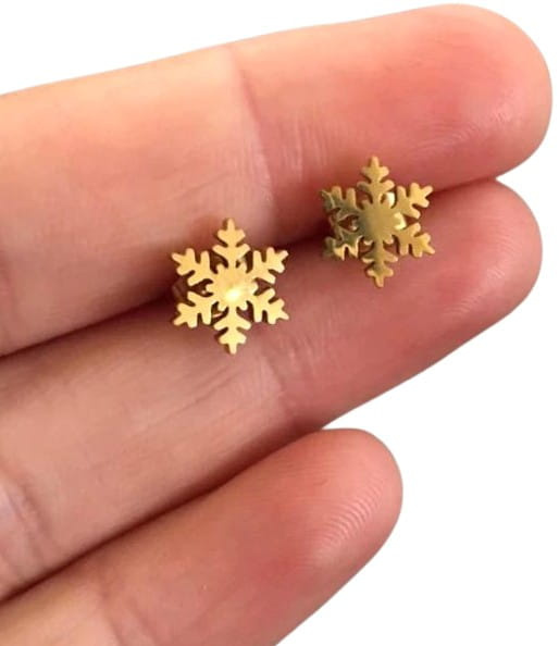Cercei mici din aur, oțel chirurgical, fulg de nea