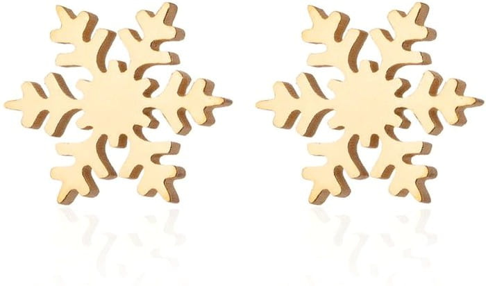 Produsul pe care îl oferim se potrivește perfect cu atmosfera festivă. Acesta poate fi o completare a stilului purtat în această perioadă. Acești cercei mici din fulg de zăpadă din oțel chirurgical auriu sunt foarte ușor de pus și de scos.