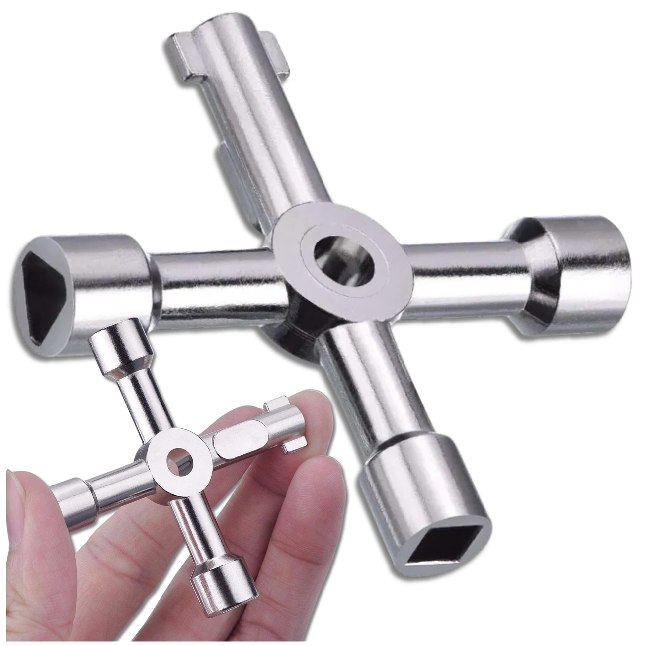 Cheia încrucișată modernă cu 4 căi este un instrument practic care ar trebui să facă parte din trusa de instrumente pentru fiecare pasionat de bricolaj, tehnician de service și instalator. Cu patru sfaturi diferite într-un singur instrument, obțineți acces universal la multe tipuri de încuietori și șuruburi tehnice. Acest produs complet nou este realizat dintr-un aliaj metalic de înaltă rezistență, rezistent la coroziune și la utilizare intensivă.