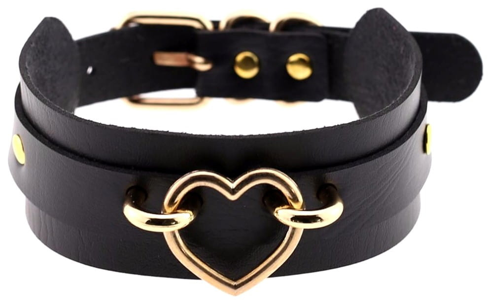 Întreaga piesă are 4,5 cm lățime și 41 cm lungime. Închizătoarea reglabilă vă permite să ajustați dimensiunea ornamentului la dimensiunea fiecărui gât. Tăietura punk este întreruptă de motivul unei inimi aurii romantice, care se găsește pe partea din față a colierului.