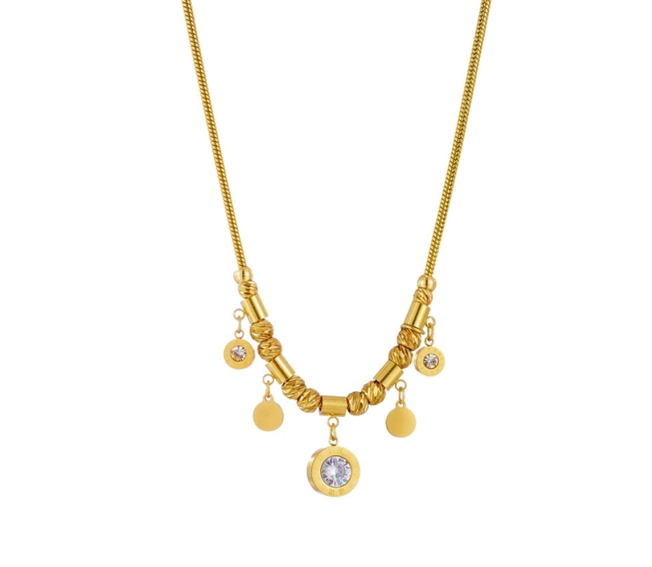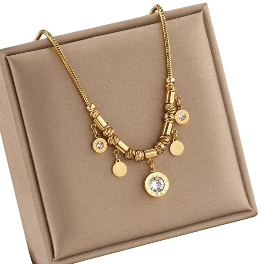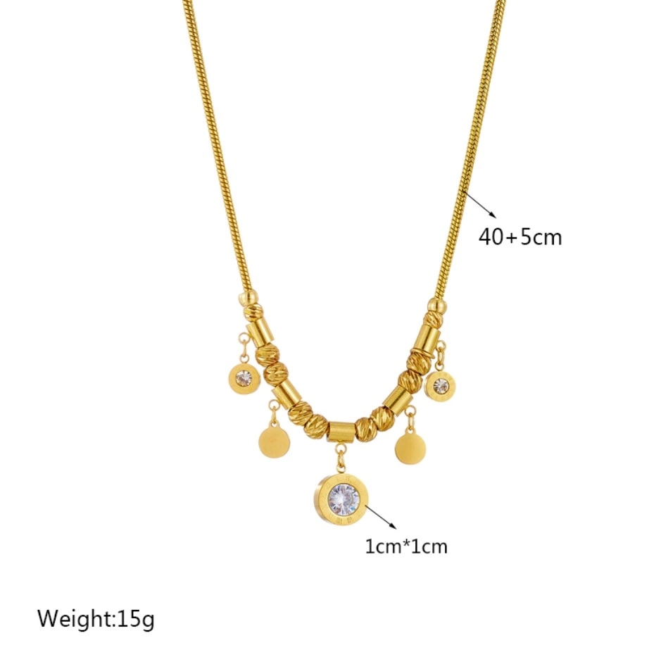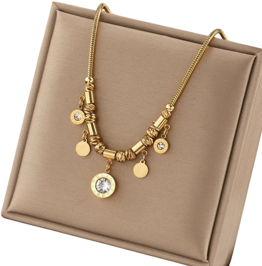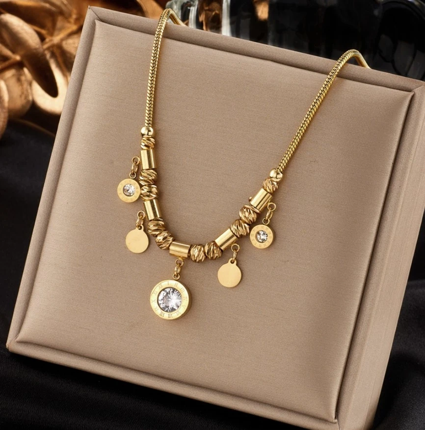 Colier cu lanț de aur, oțel chirurgical, pandantive cu zircon