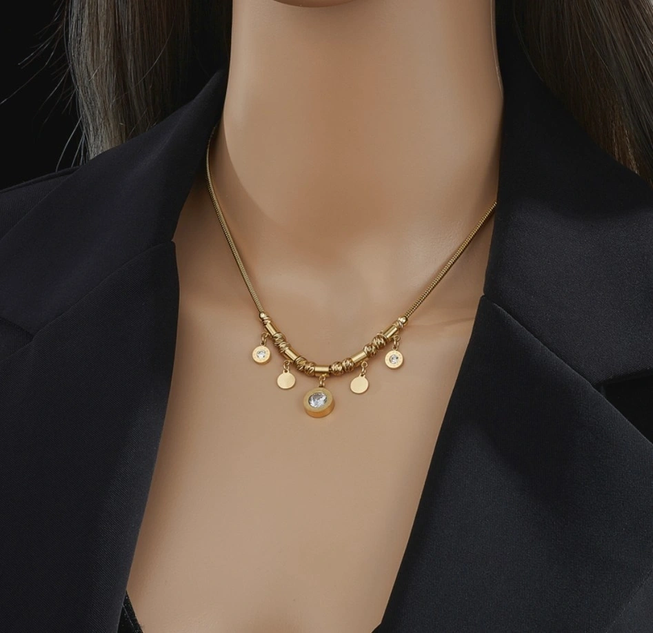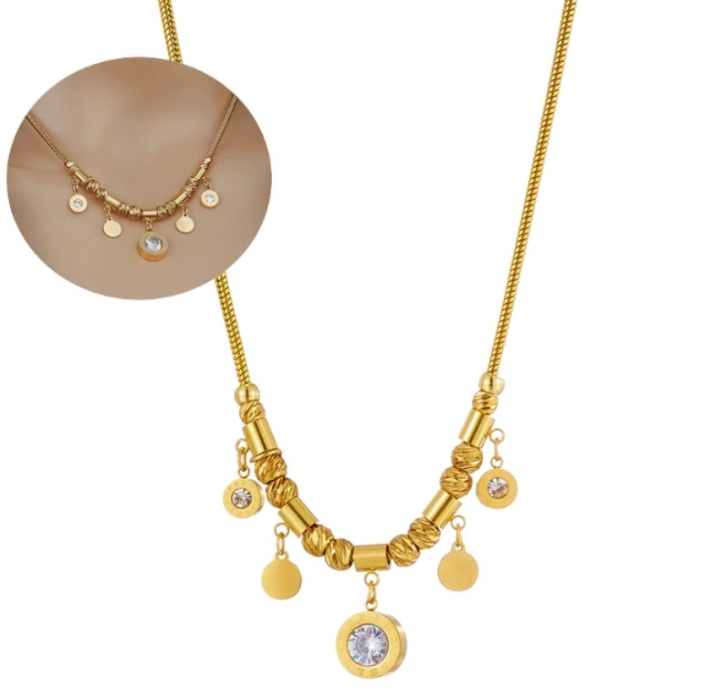Excepțional de frumos pe gâtul unei femei, colierul cu lanț auriu din oțel chirurgical pandantiv zirconiu din gama noastră extinsă este un accesoriu de bijuterie atemporal.