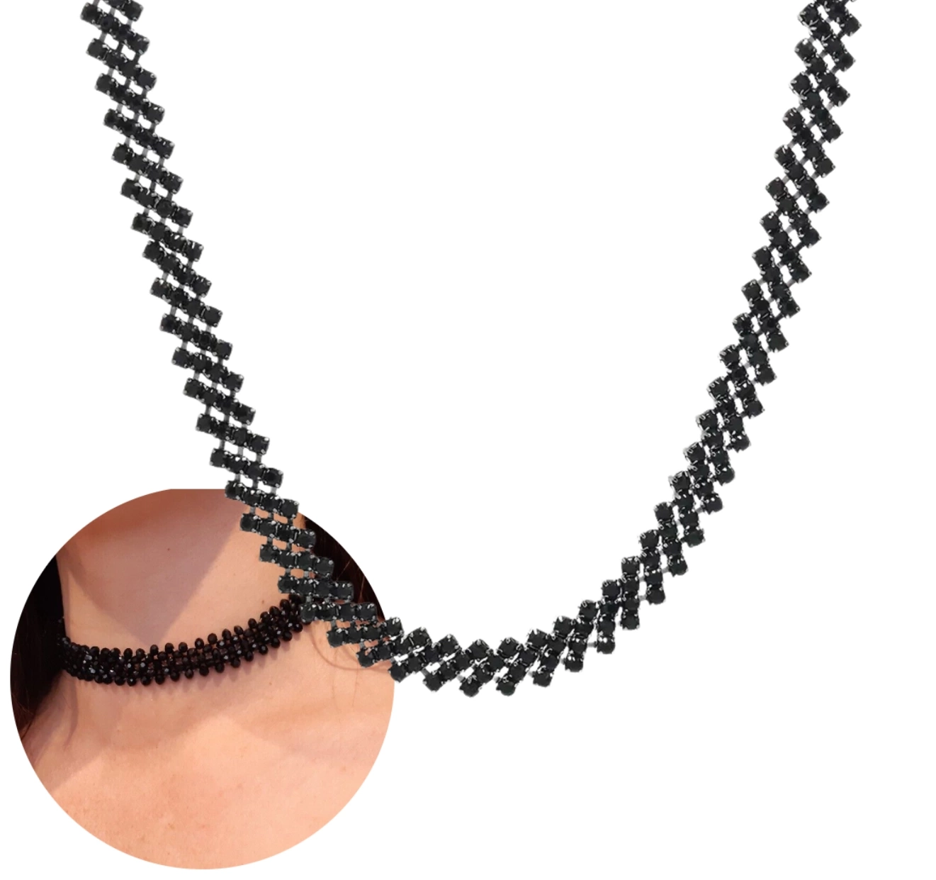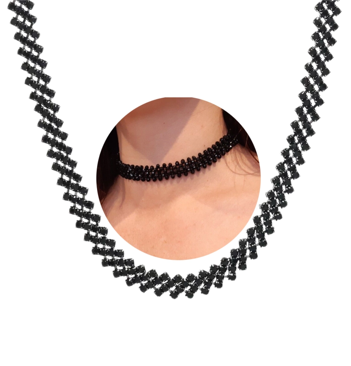 Colier cu zirconiu cubic, choker dama, guler, cristale negre