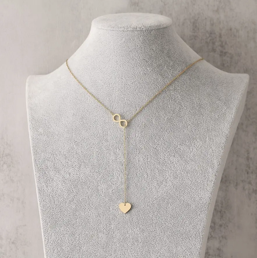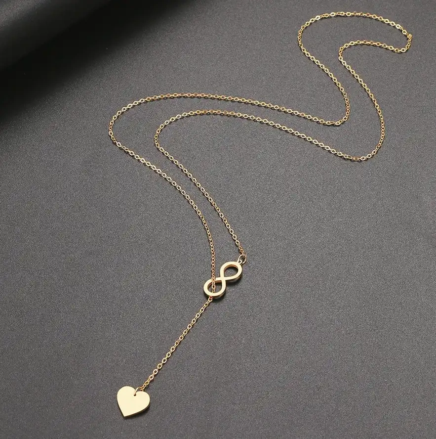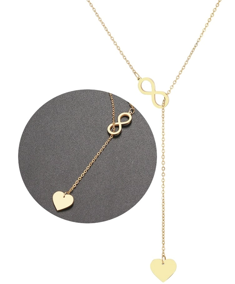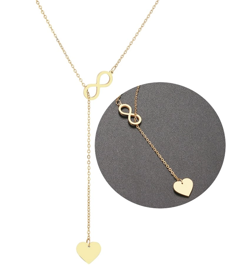 Colier lung auriu elegant infinit inimă din oțel chirurgical - produs original cu accesorii la modă.